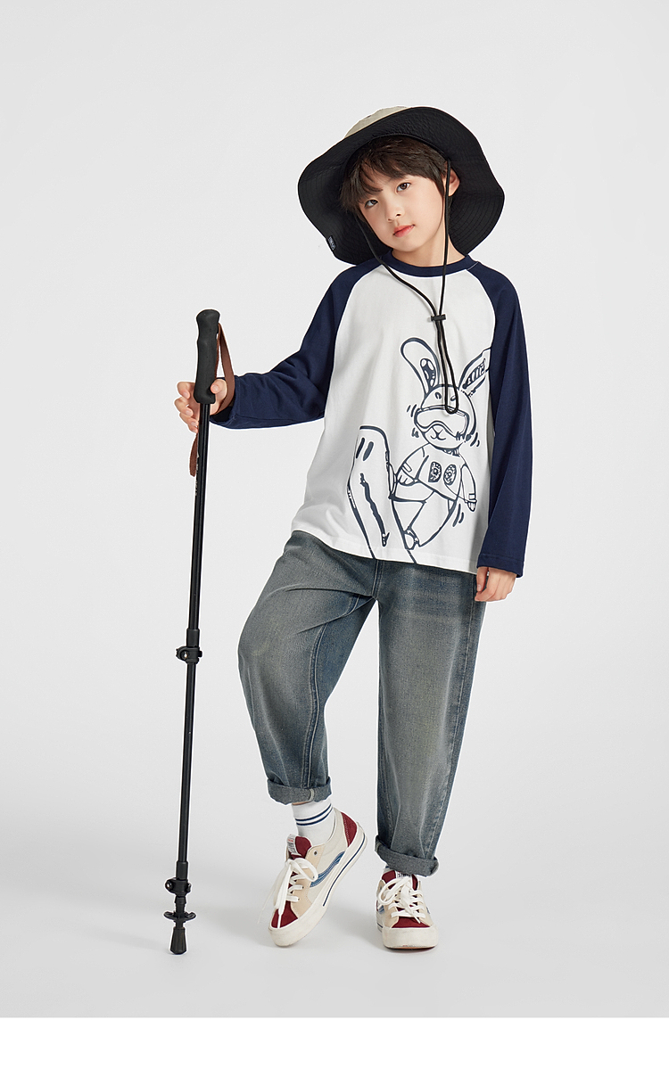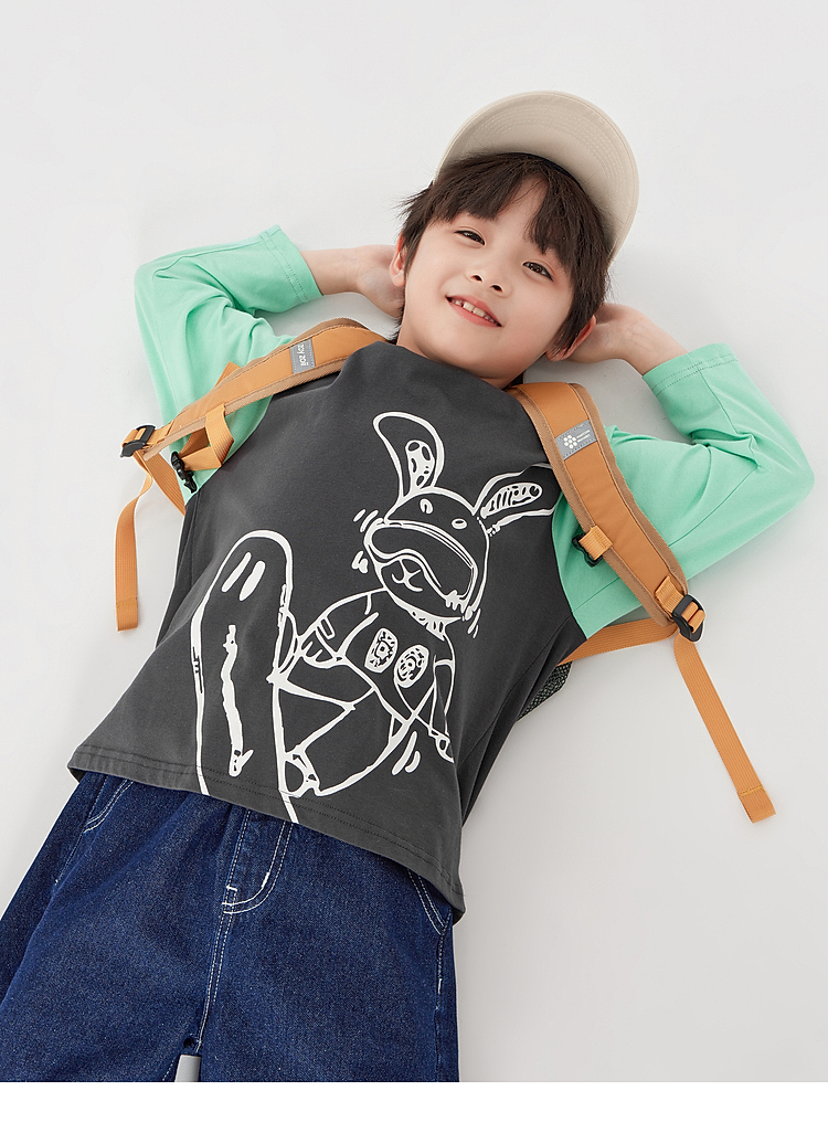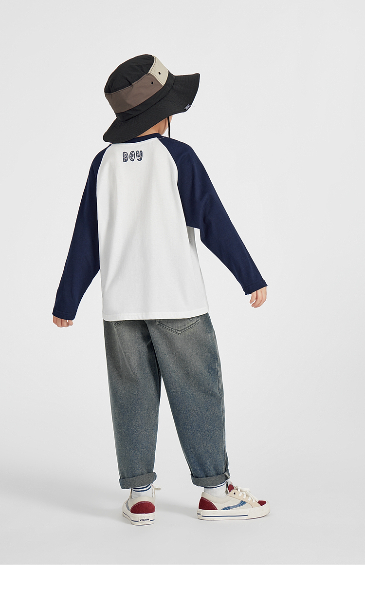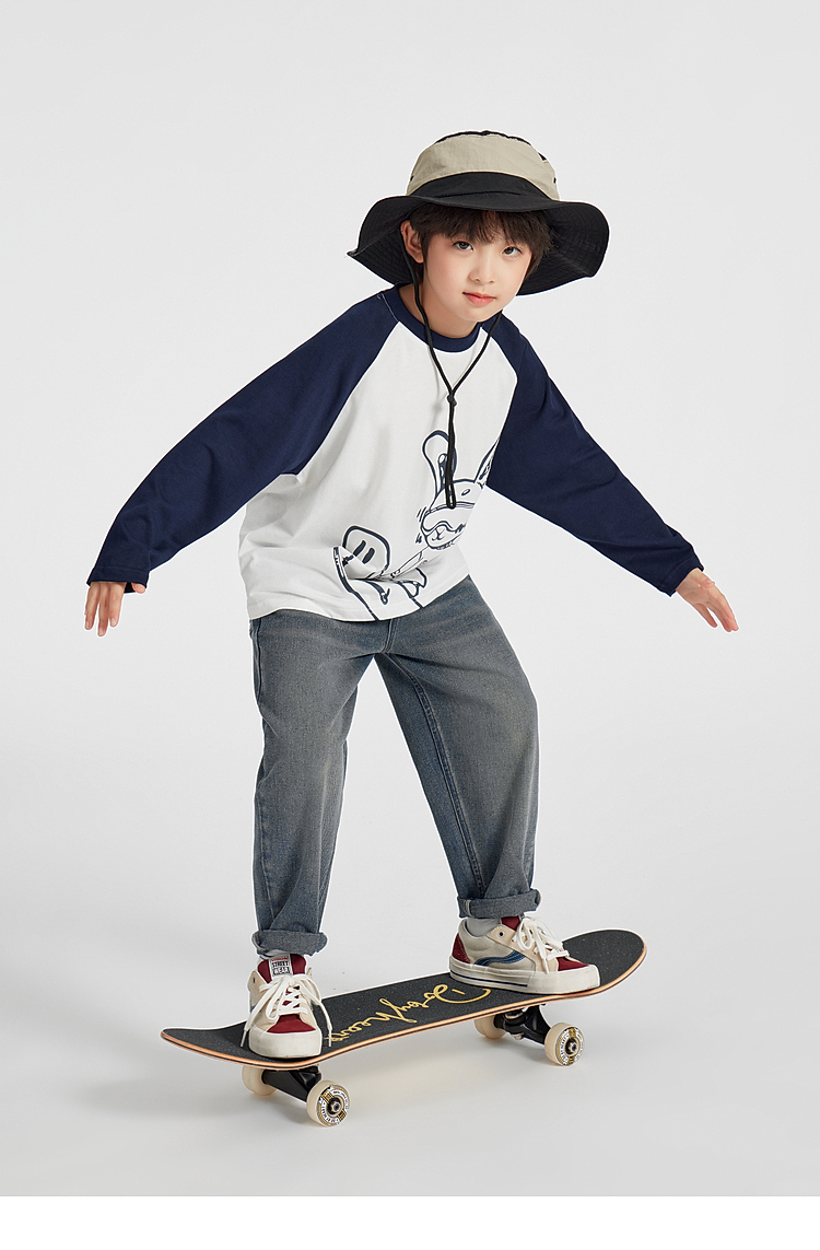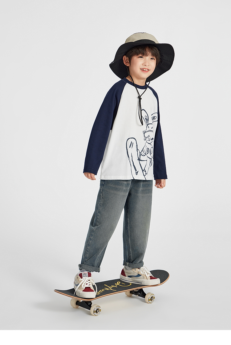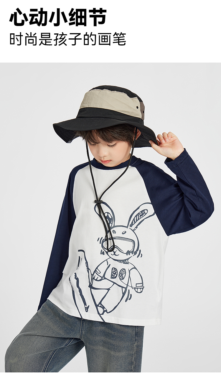 【团购价29.9】多多家男童长袖T恤纯棉2025春秋新款儿童中大童撞色印花打底衫潮10344