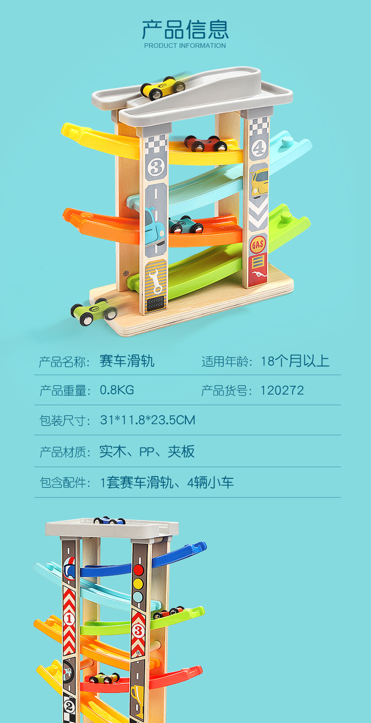 特宝儿益智滑翔轨道车滑梯停车场男孩女宝宝儿童玩具小汽车