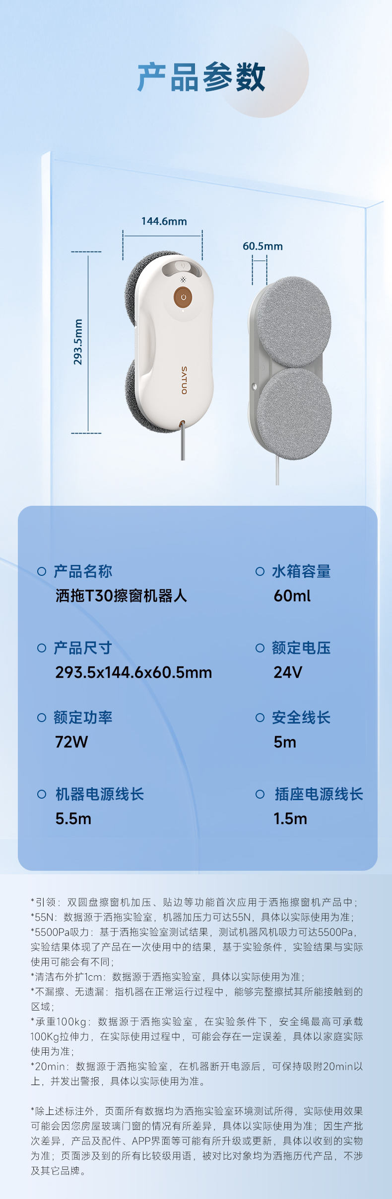 SATUO洒拖【爆款热销】洒拖T30至臻版智能擦窗机器人高层擦窗神器