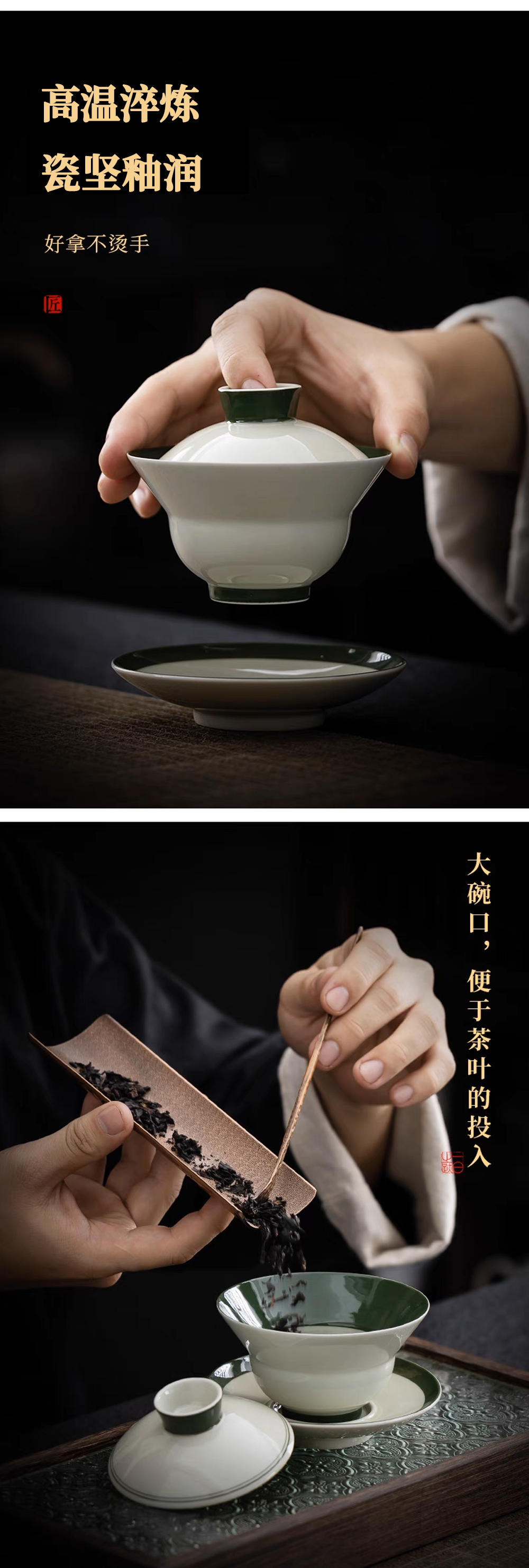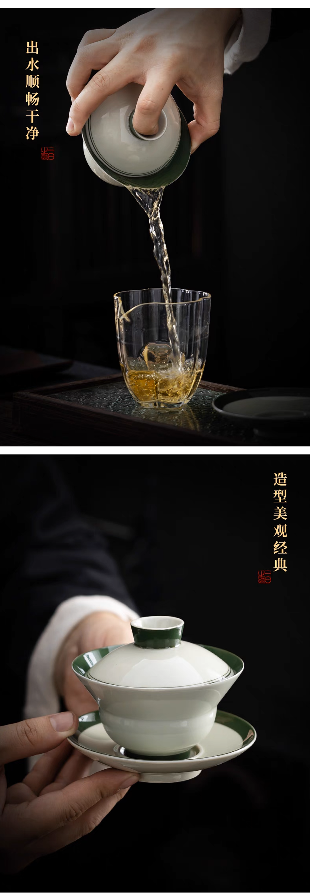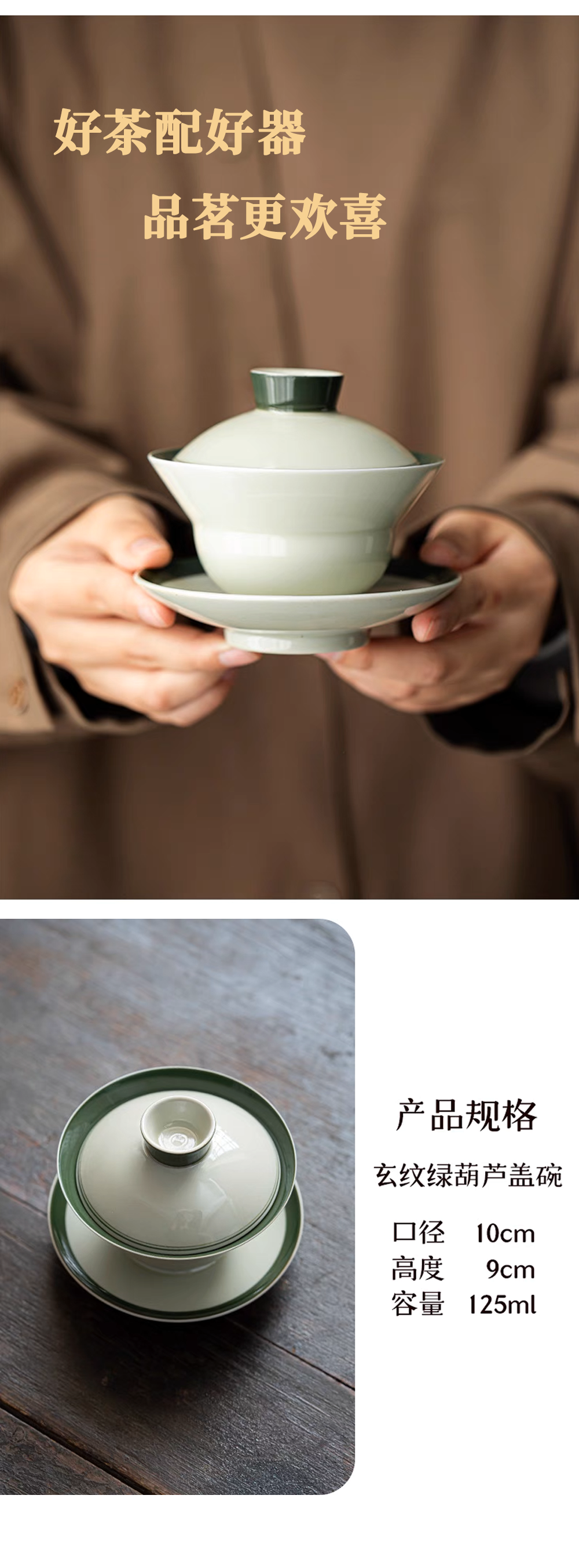 沁茶悦旅玄纹绿吉祥葫芦三才盖碗礼盒装