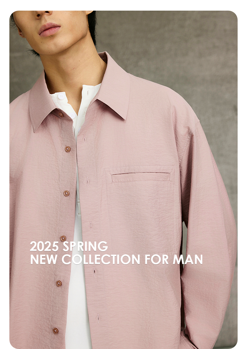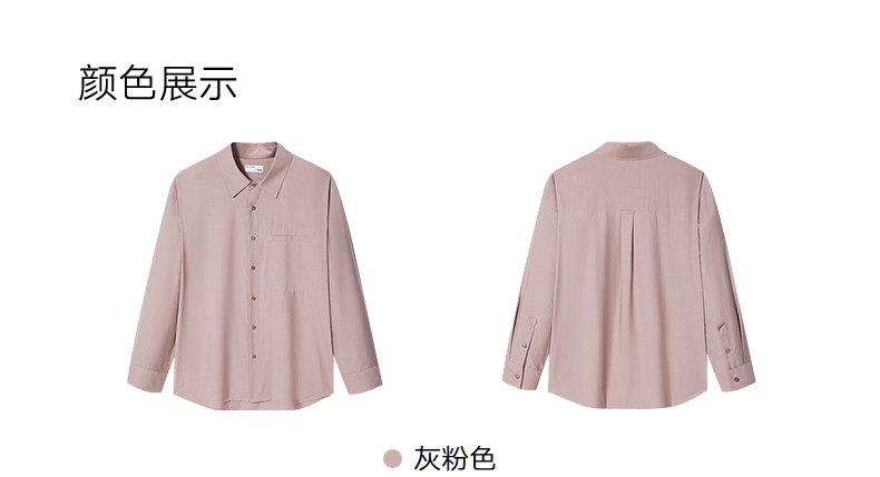 GXG男装 灰粉色微皱清新时尚翻领长袖衬衫 25春季热卖G25X031001