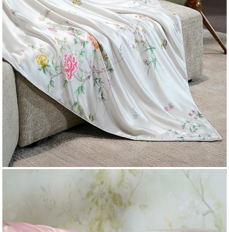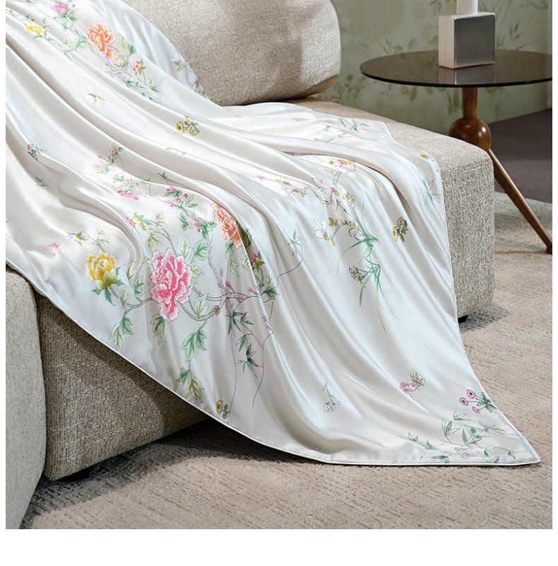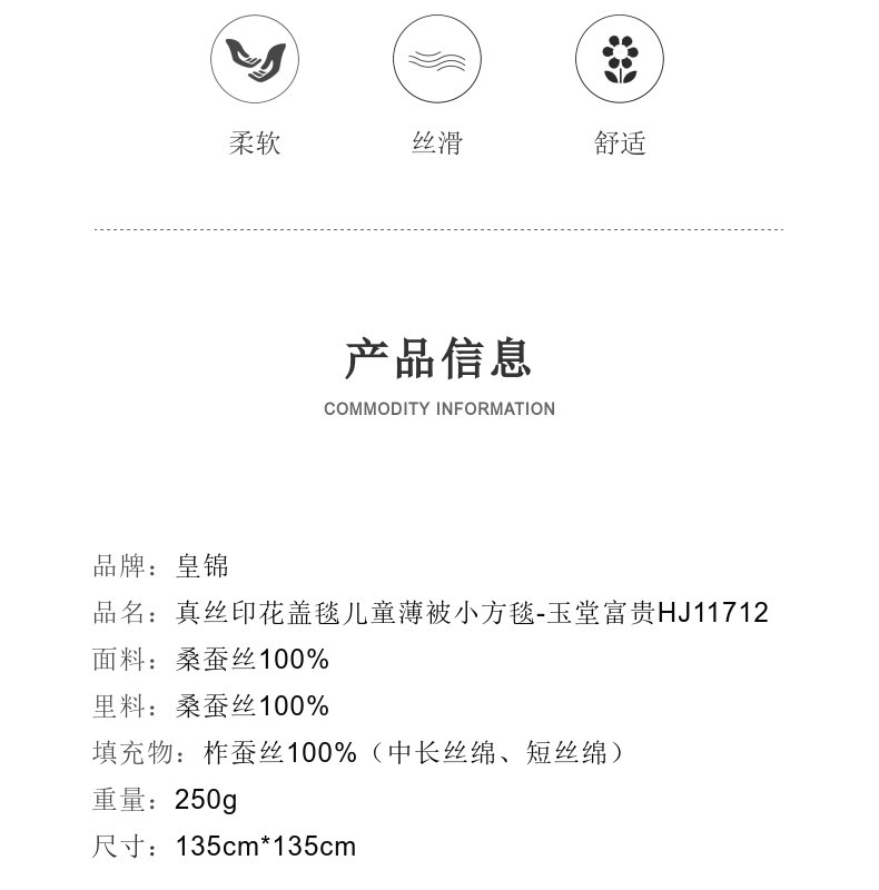 皇锦真丝印花盖毯儿童小方毯-玉堂富贵HJ11712
