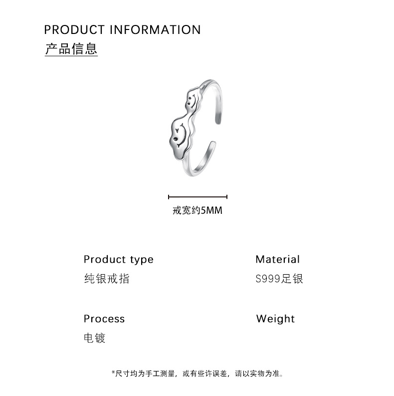 【微笑云朵】S999纯银笑脸云朵表情戒指【YXS-K2414】