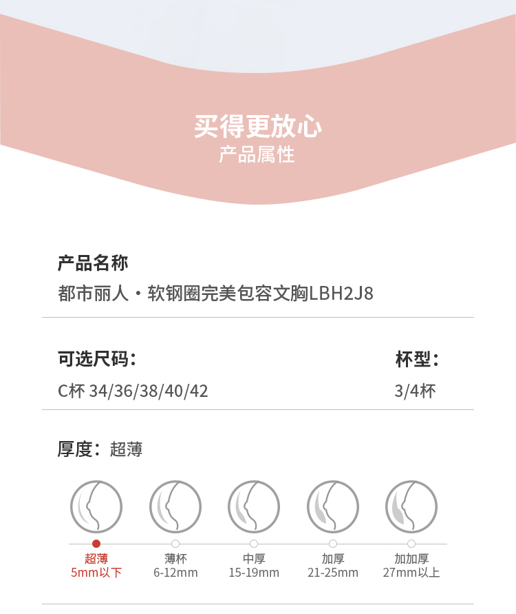 都市丽人大蜜柚完美包容内衣C:薄蕾丝软钢圈常规文胸LBH2J8