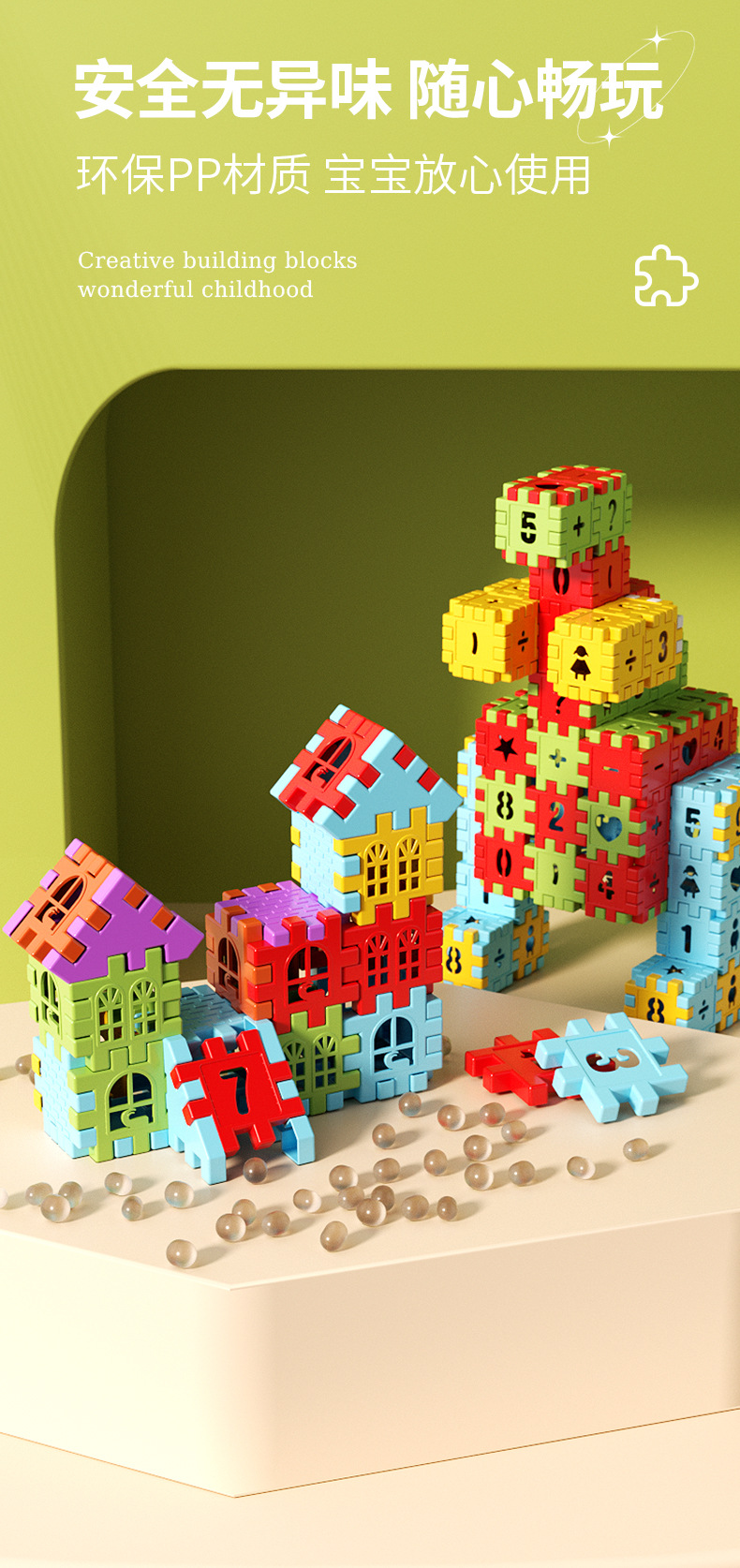 【构建孩子的梦想世界】DIY房屋积木 益智立体拼搭 食品级大房子积木 大颗粒安全无异味 搭房子积木拼装益智积木