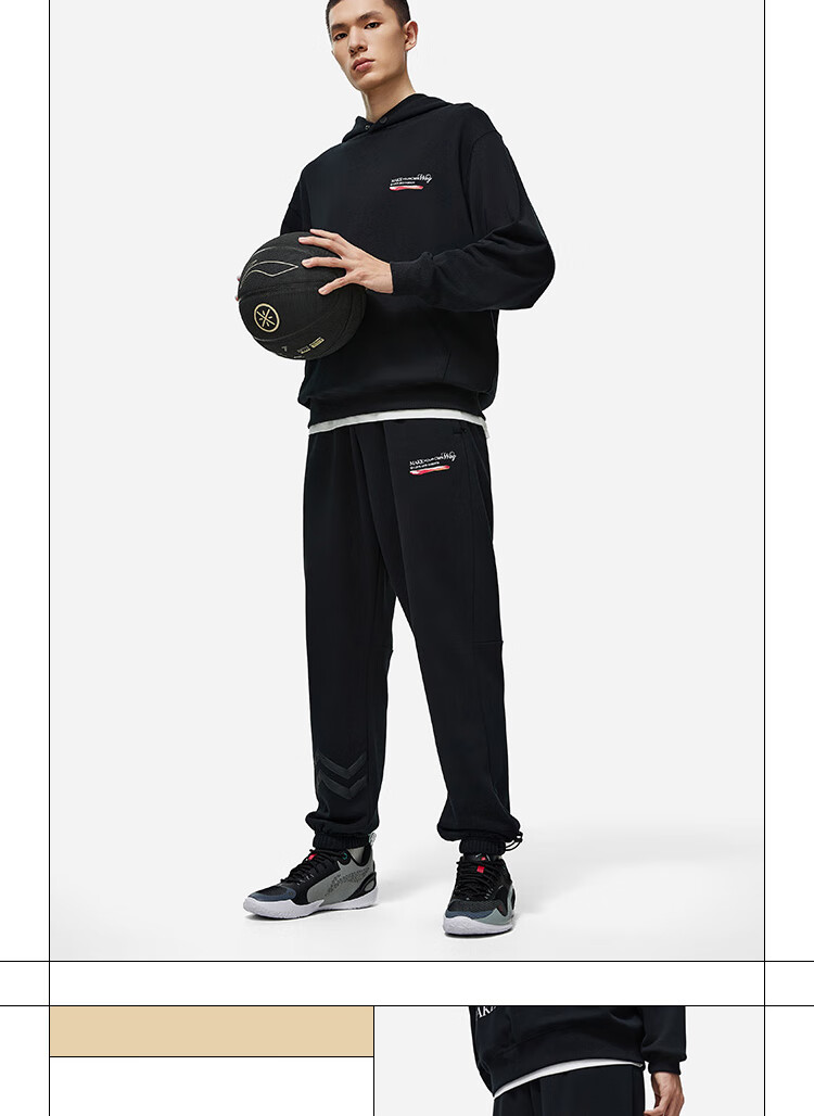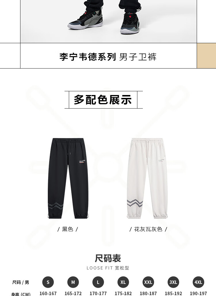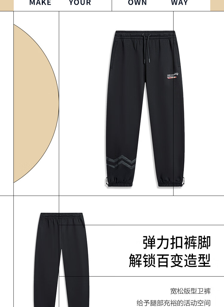 李宁韦德生活系列丨卫裤男子卫裤2024春季字母印花束脚运动裤AKLU013