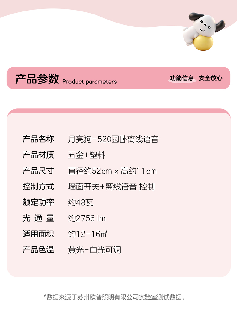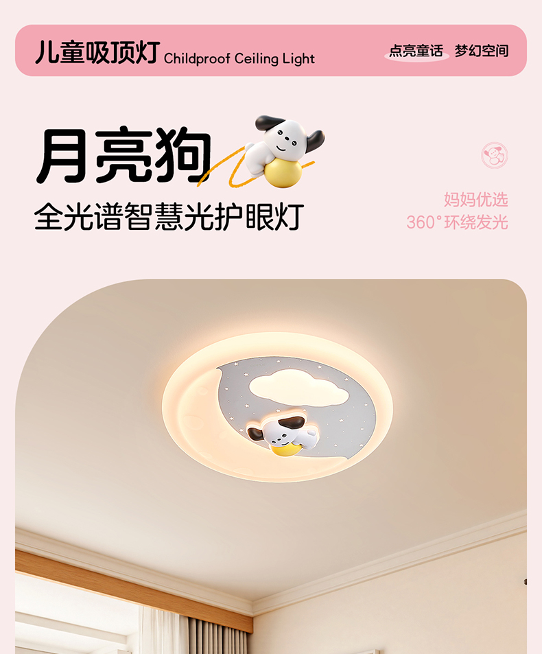 欧普(OPPLE)月亮狗卧室卡通圆形声控儿童房吸顶灯