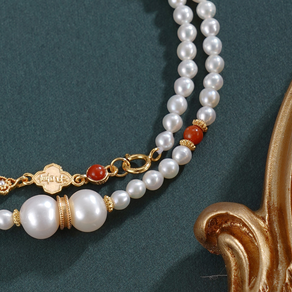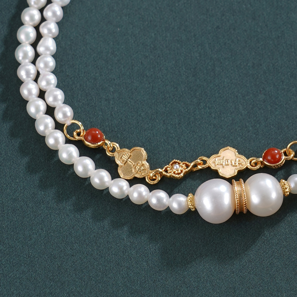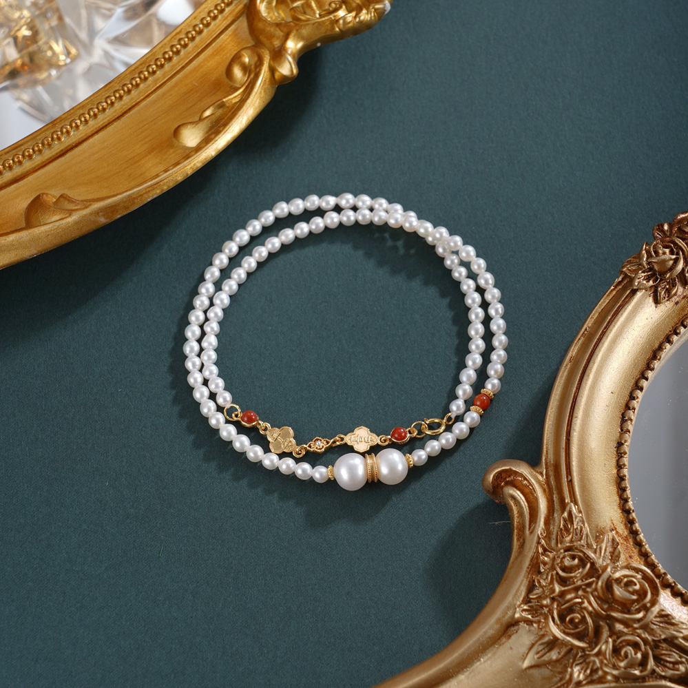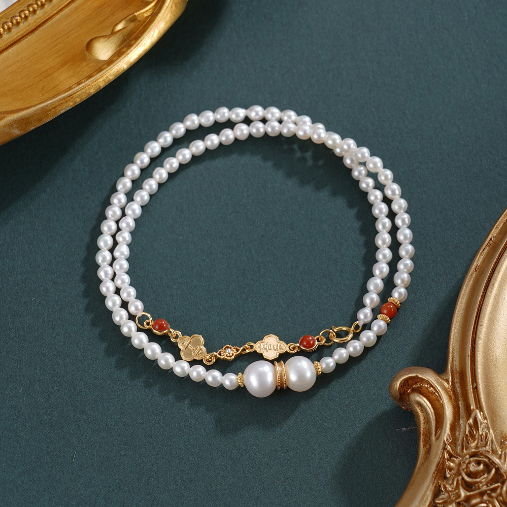 子佩集【幸运礼赞】银S925珍珠惜王妃手链【QNS0011】3mm珠镀金南红四叶草2601