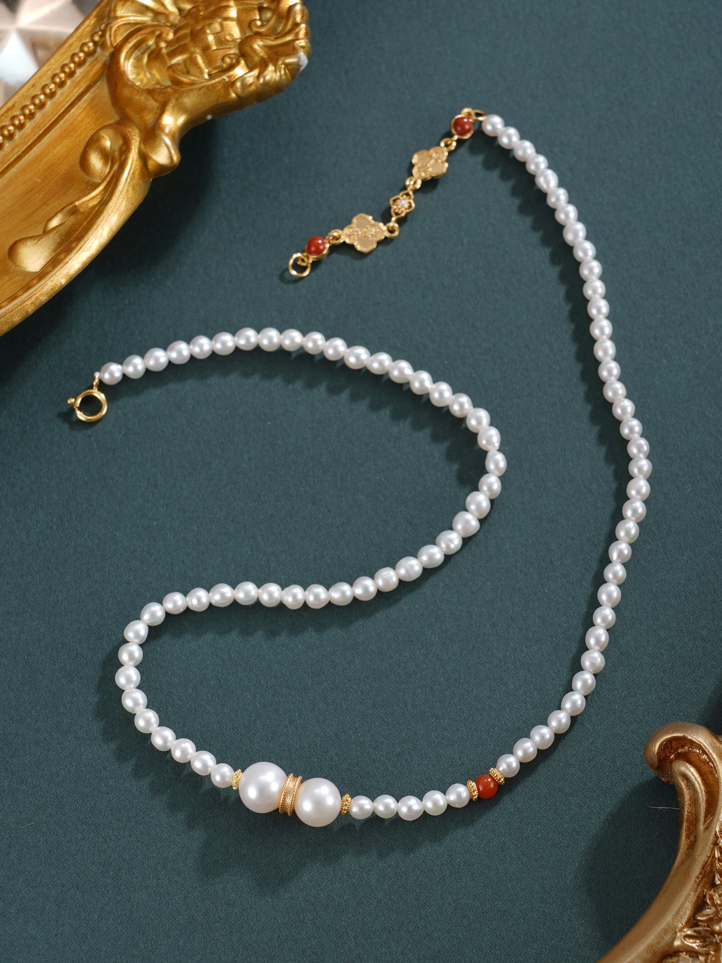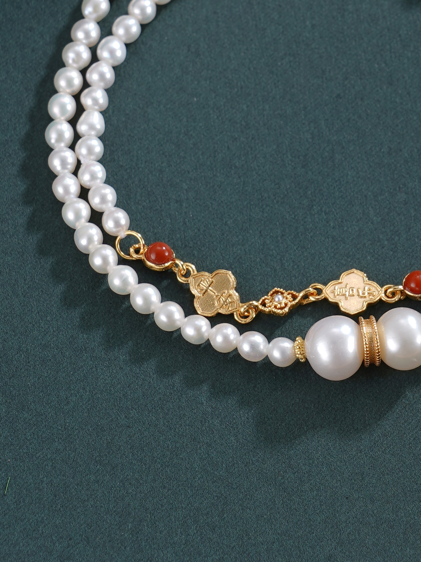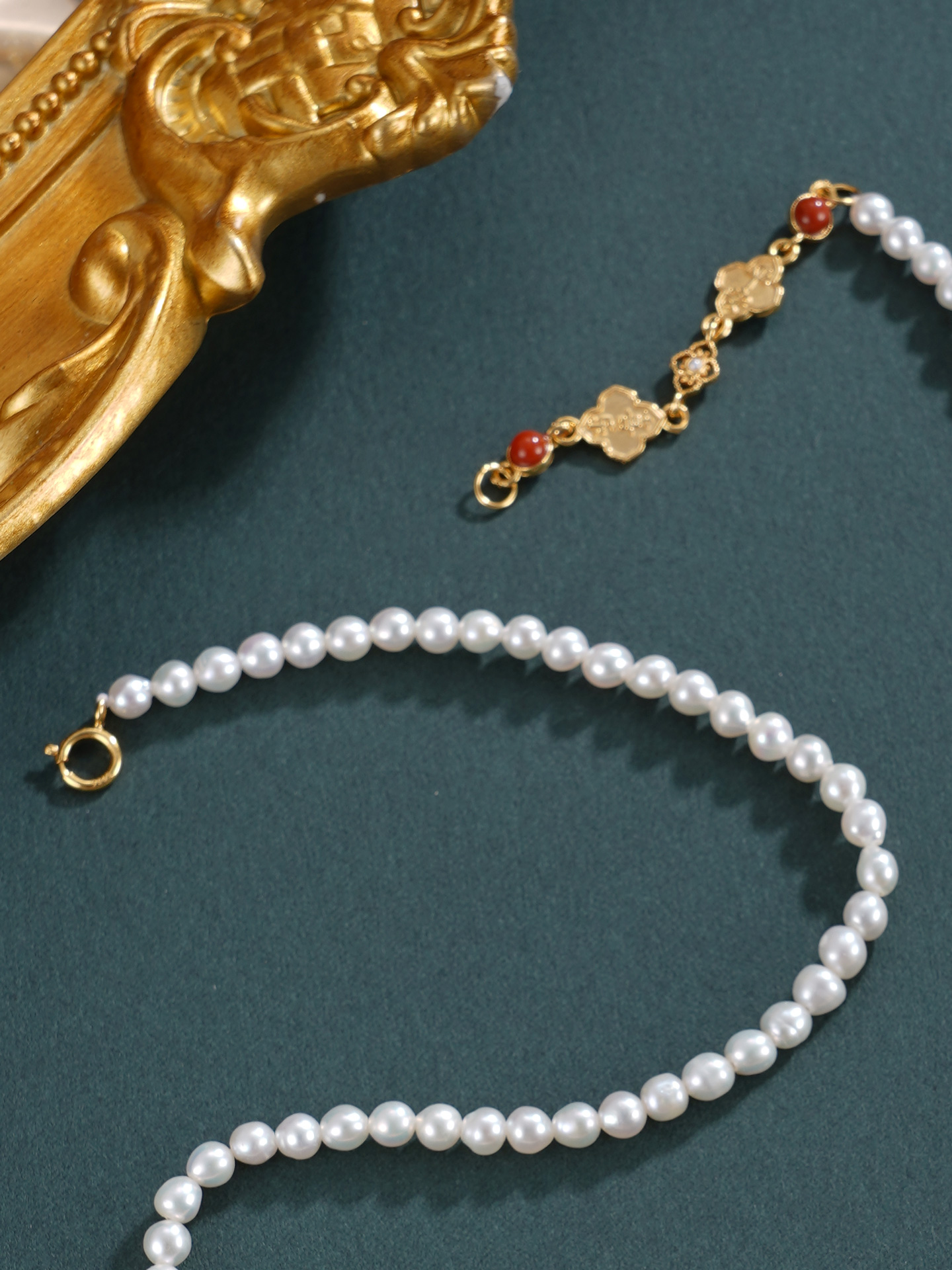 子佩集【幸运礼赞】银S925珍珠惜王妃手链【QNS0011】3mm珠镀金南红四叶草2601