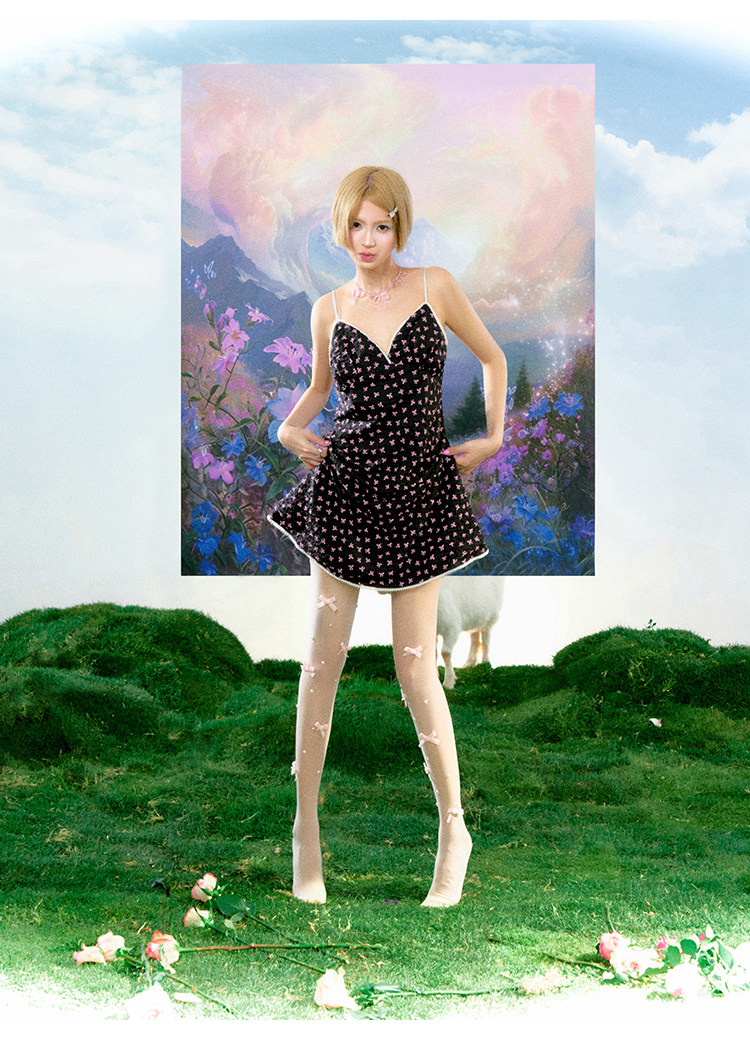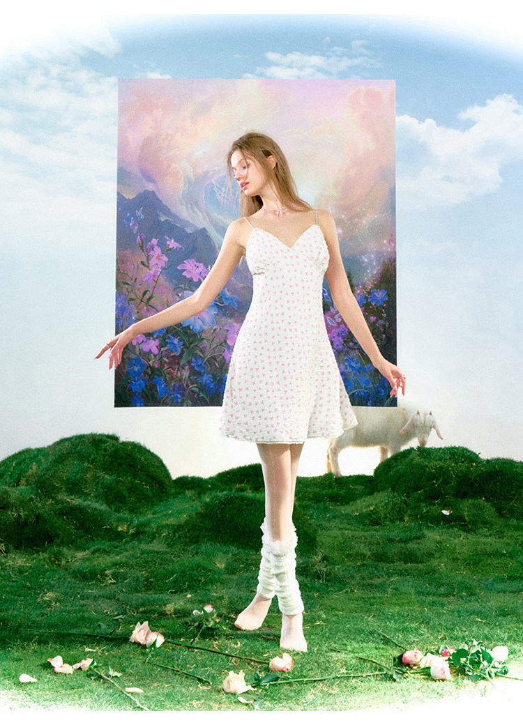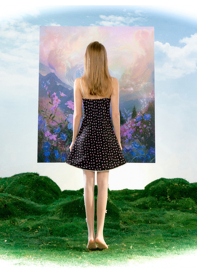 FTT FlyTheTruth 莫奈小憩 夏日蝴蝶结吊带连衣裙女法式少女长裙