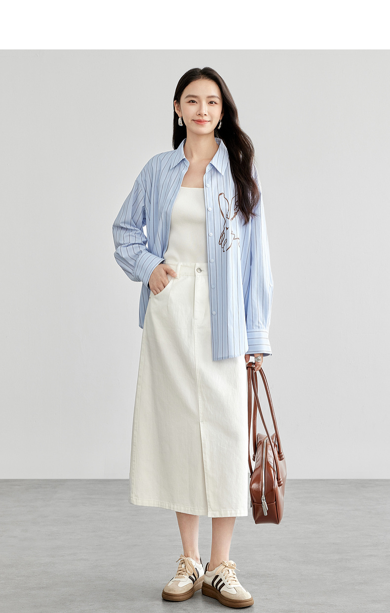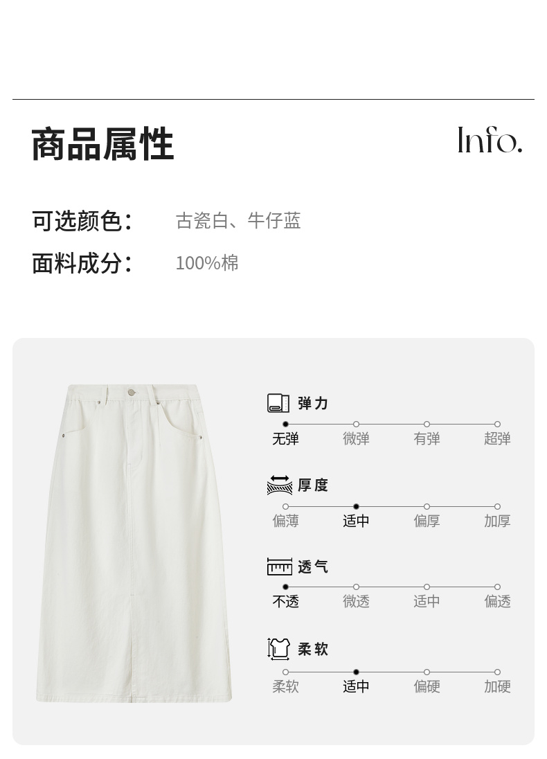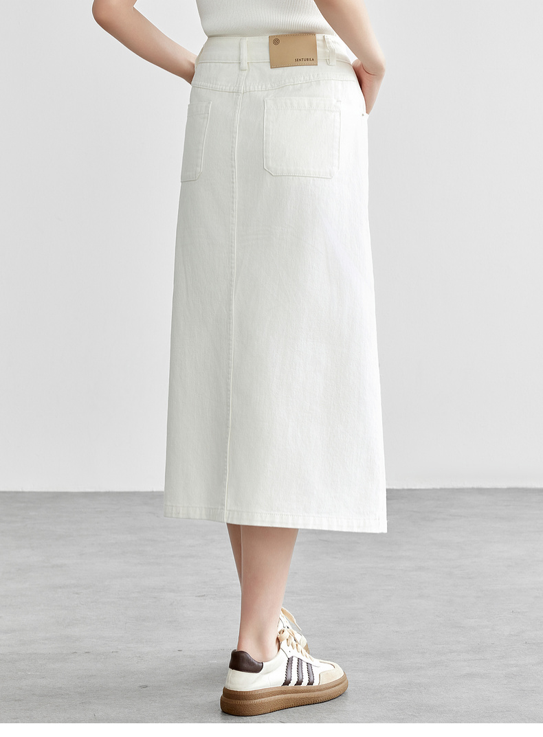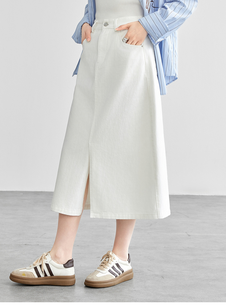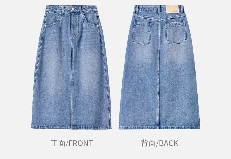【内购】复古丹宁水洗牛仔100%棉半身裙开衩裙摆设计感牛仔裤-W51Q57899