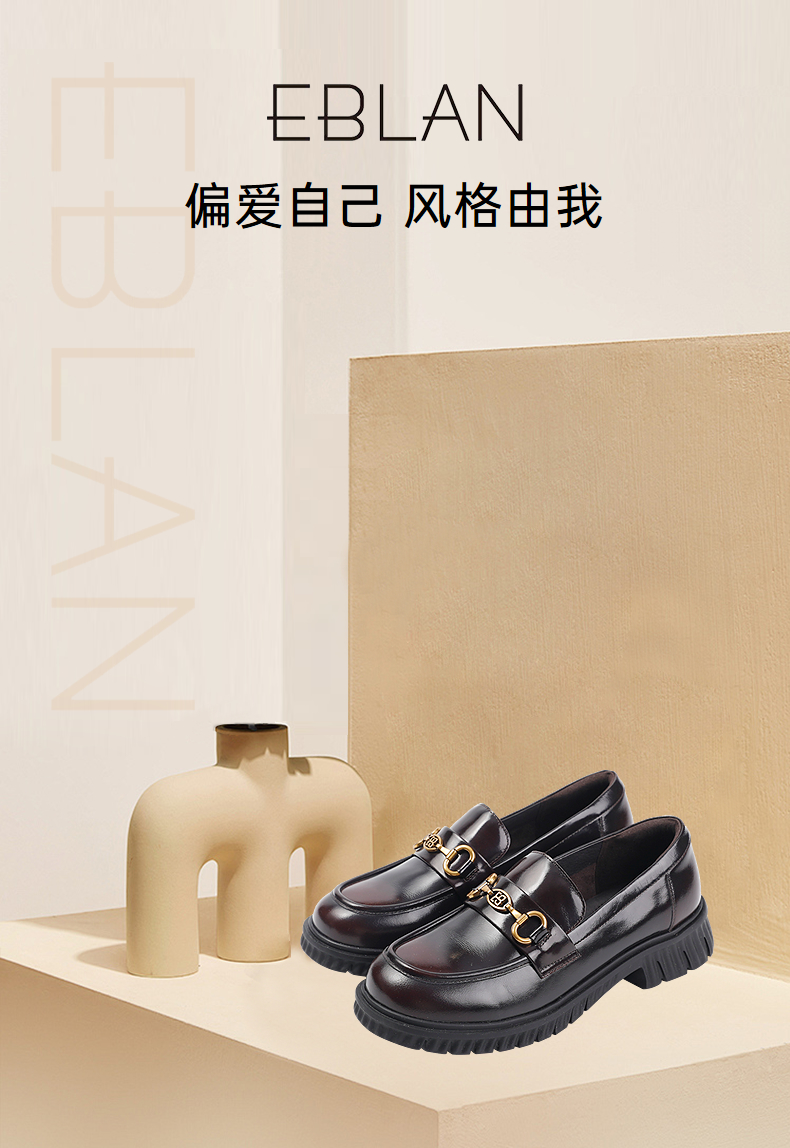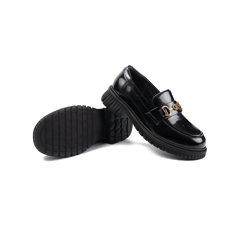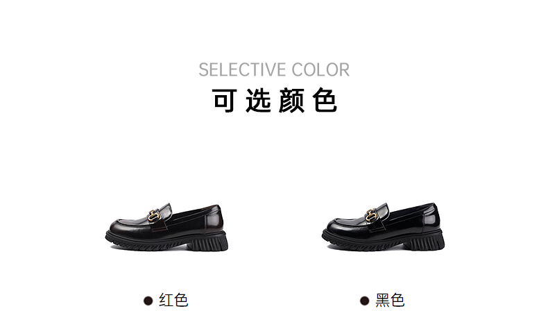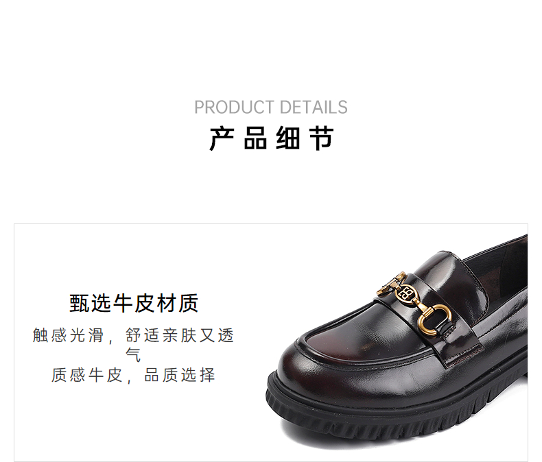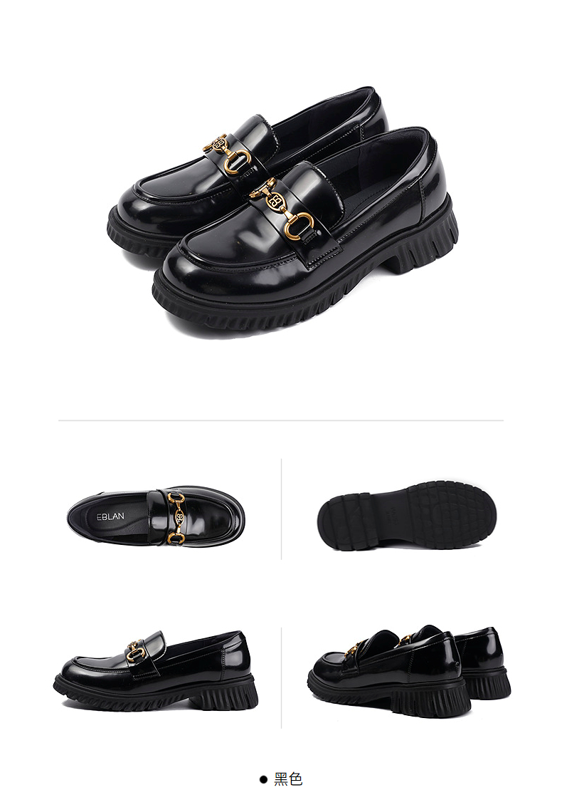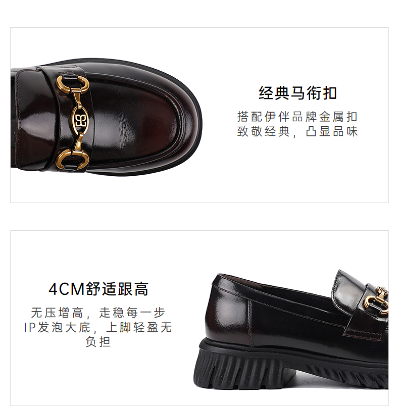 伊伴秋季经典马衔扣乐福鞋中跟质感牛皮鞋面单鞋B25463105