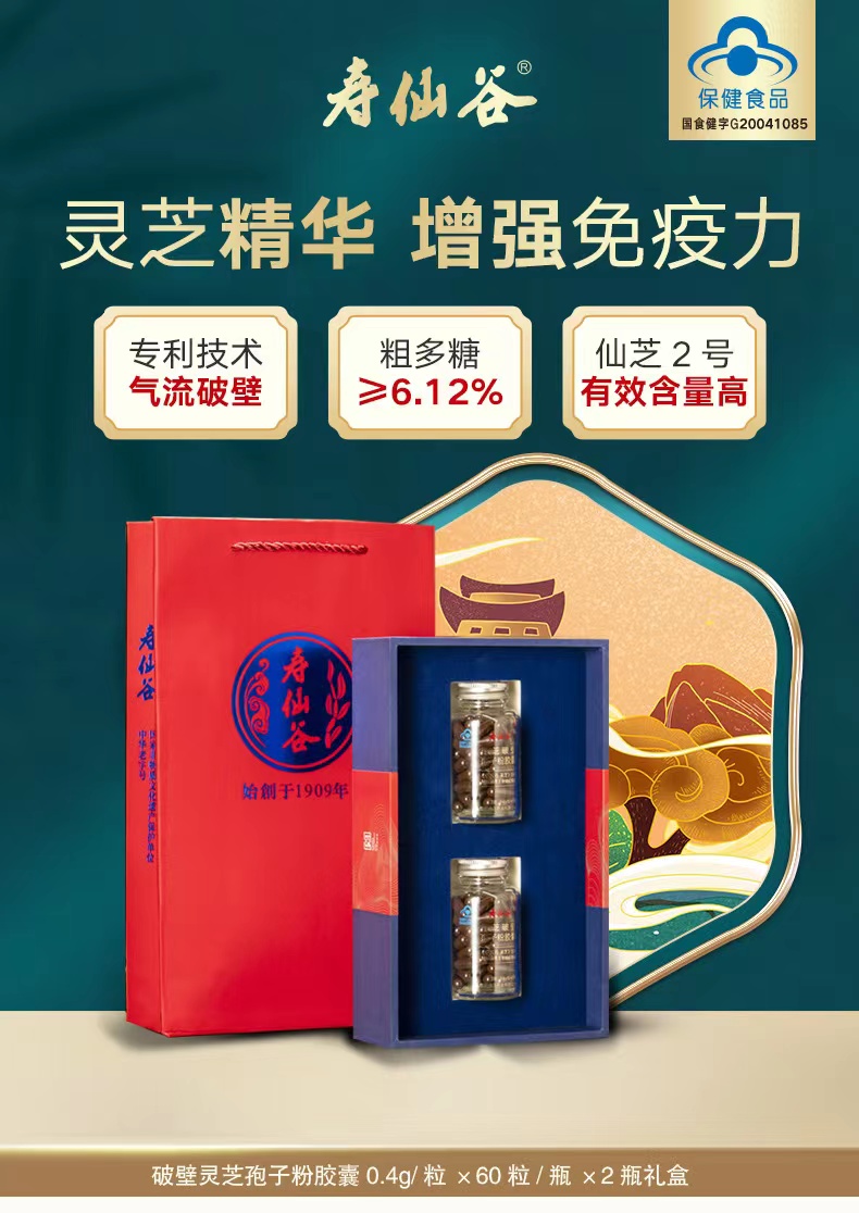 寿仙谷 灵芝破壁孢子粉胶囊0.4g/粒*60粒*2瓶