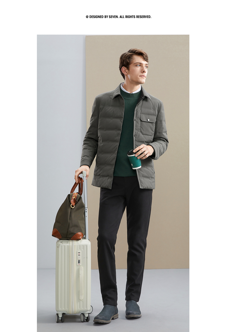 【白鸭绒】柒牌翻领羽绒服男冬季厚款中青年保暖防风男士外套 125E70120