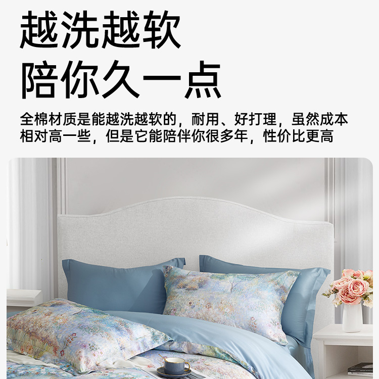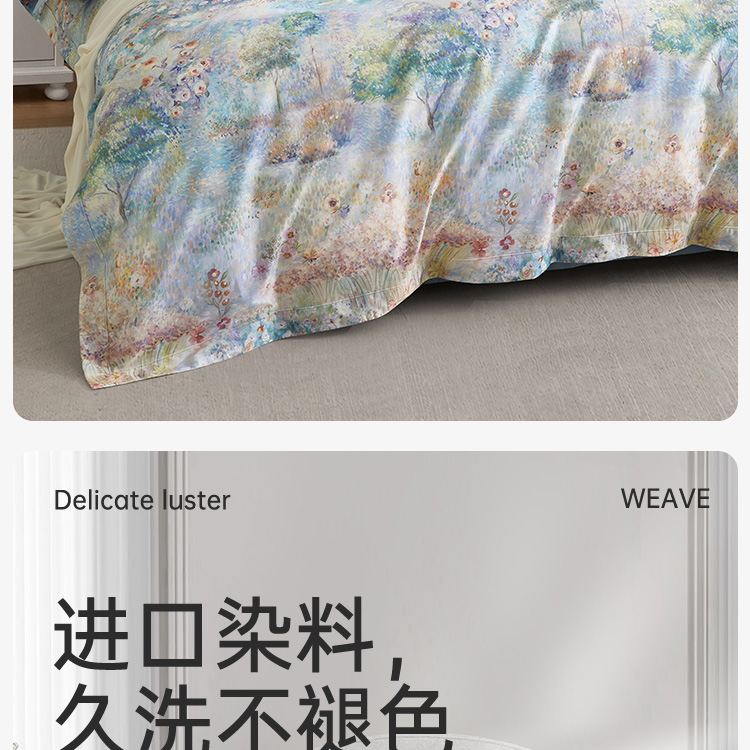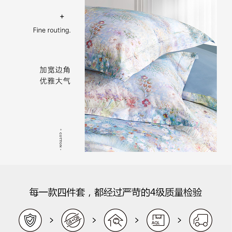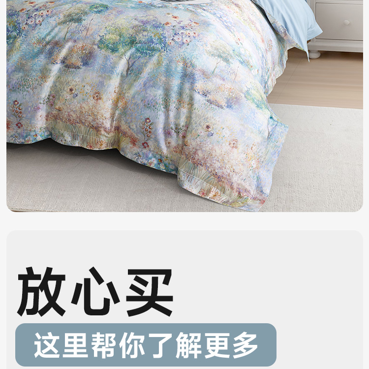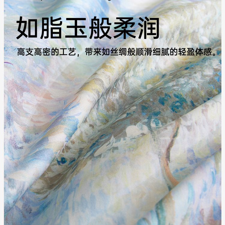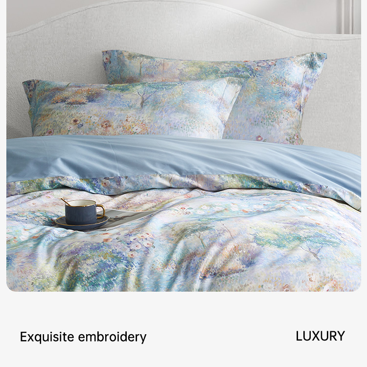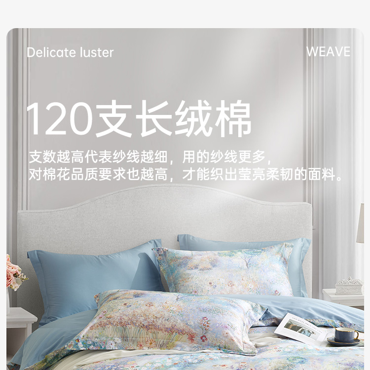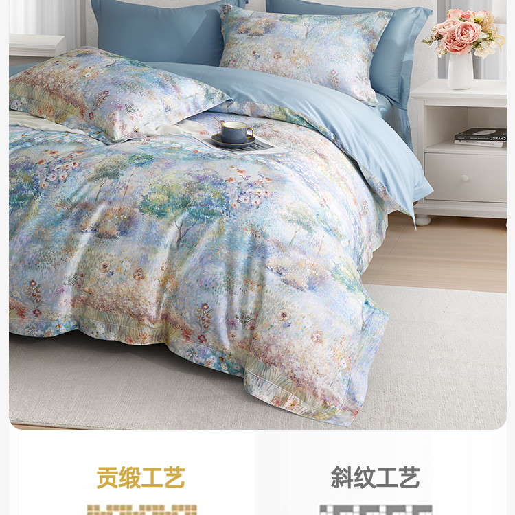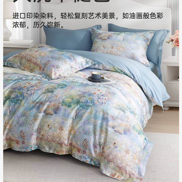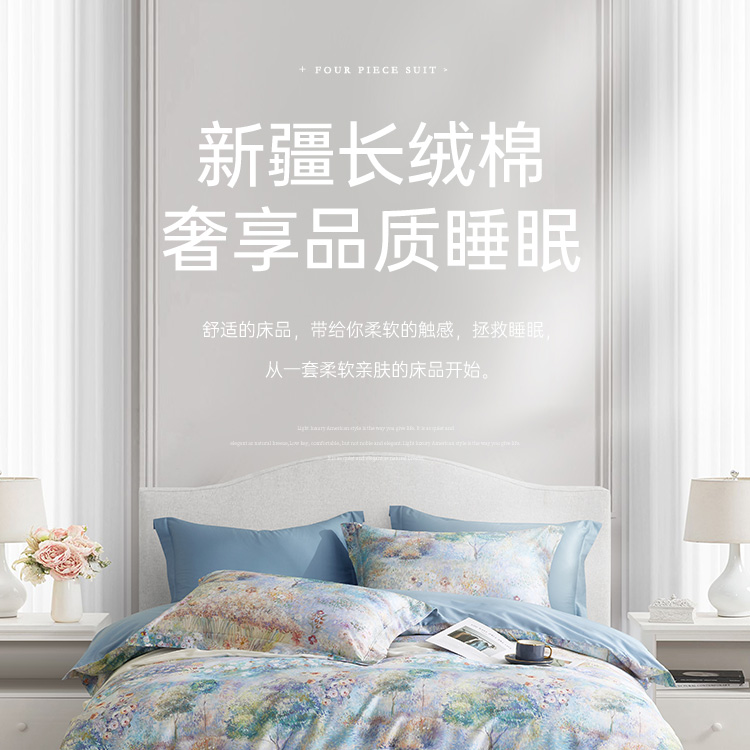 臻品120支长绒棉轻奢印花四件套(烟蓝花海)