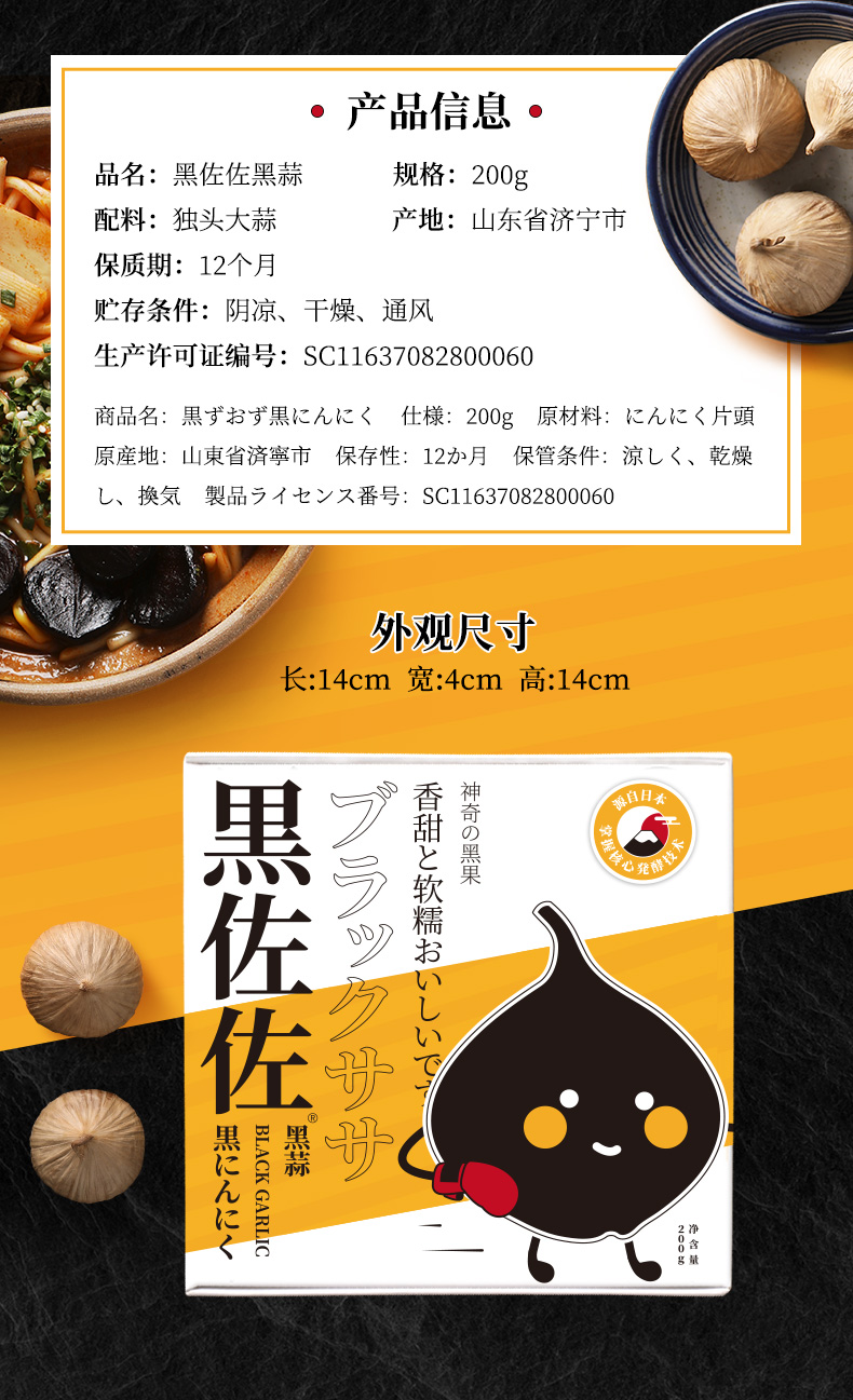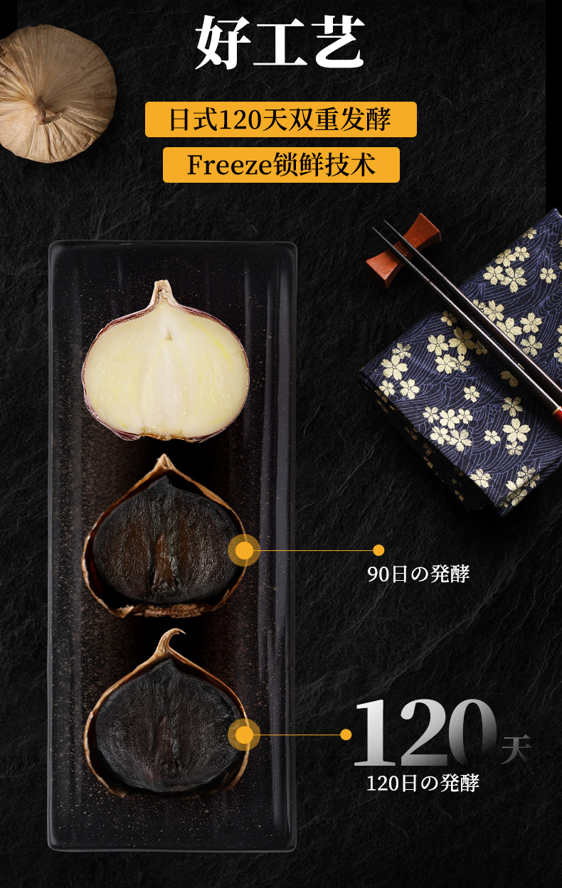 日式双重发酵 地理标识原材的独头黑蒜 200g/盒
