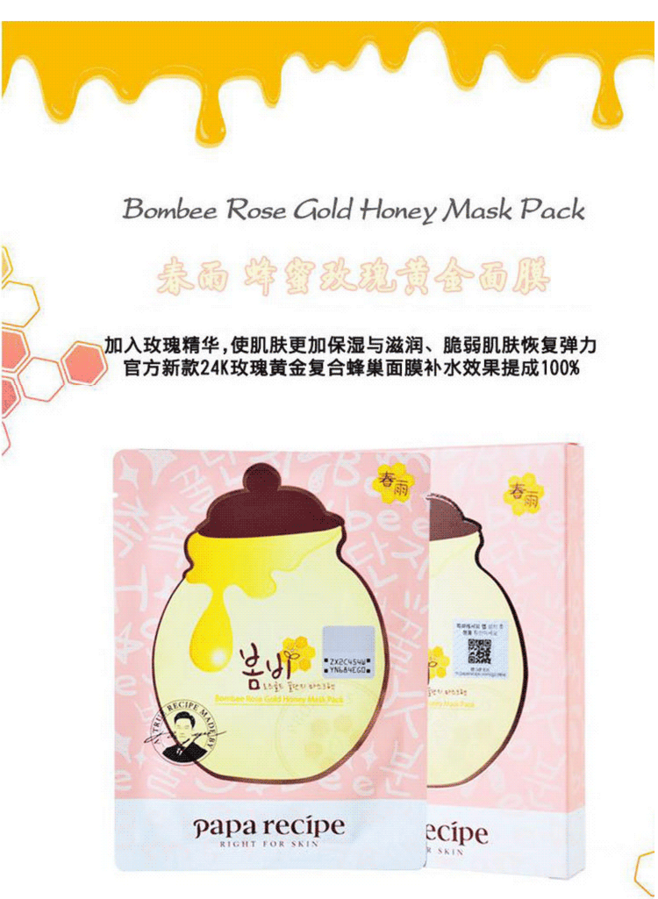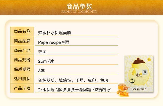 【现货】春雨蜂蜜面膜-papa recipe-补水保湿孕妇可用喔-可批发