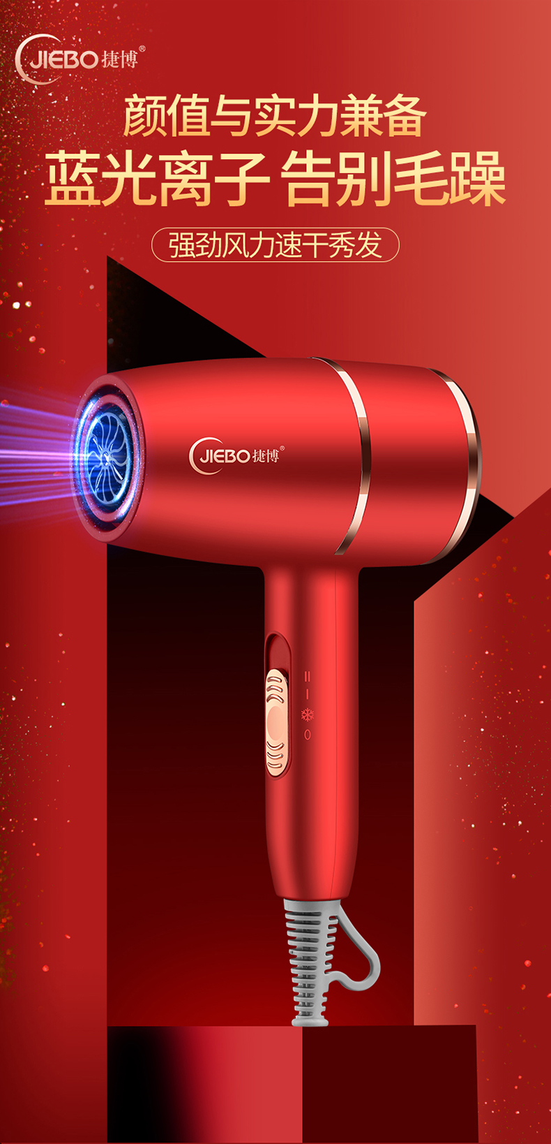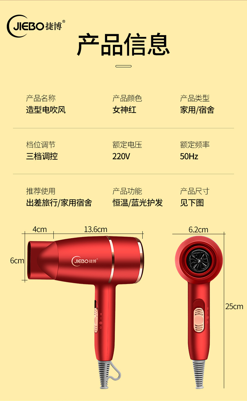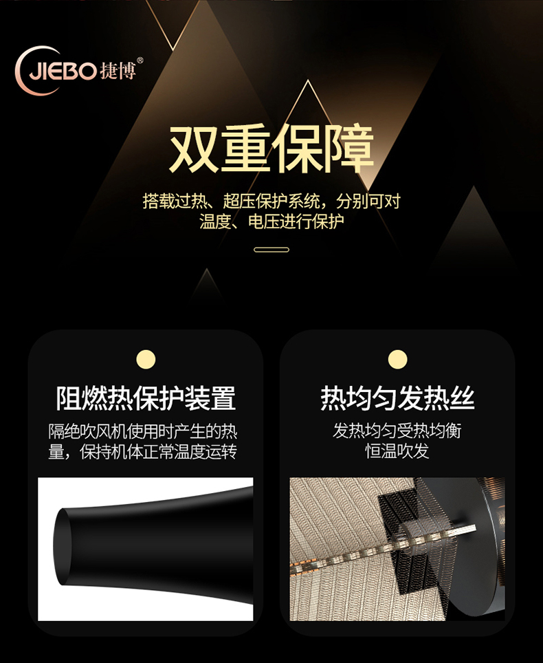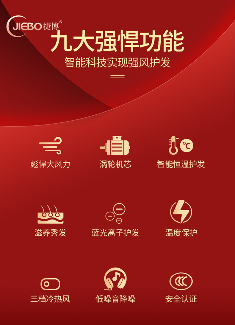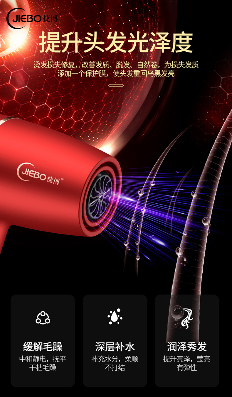 【京东398 限时钜惠129】JIEBO蓝光负离子吹风机*护发套装礼盒套装 3分钟速干 一次等于十次护理