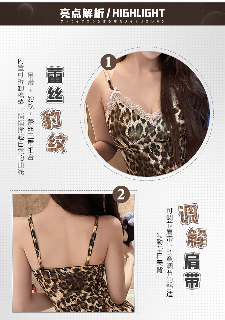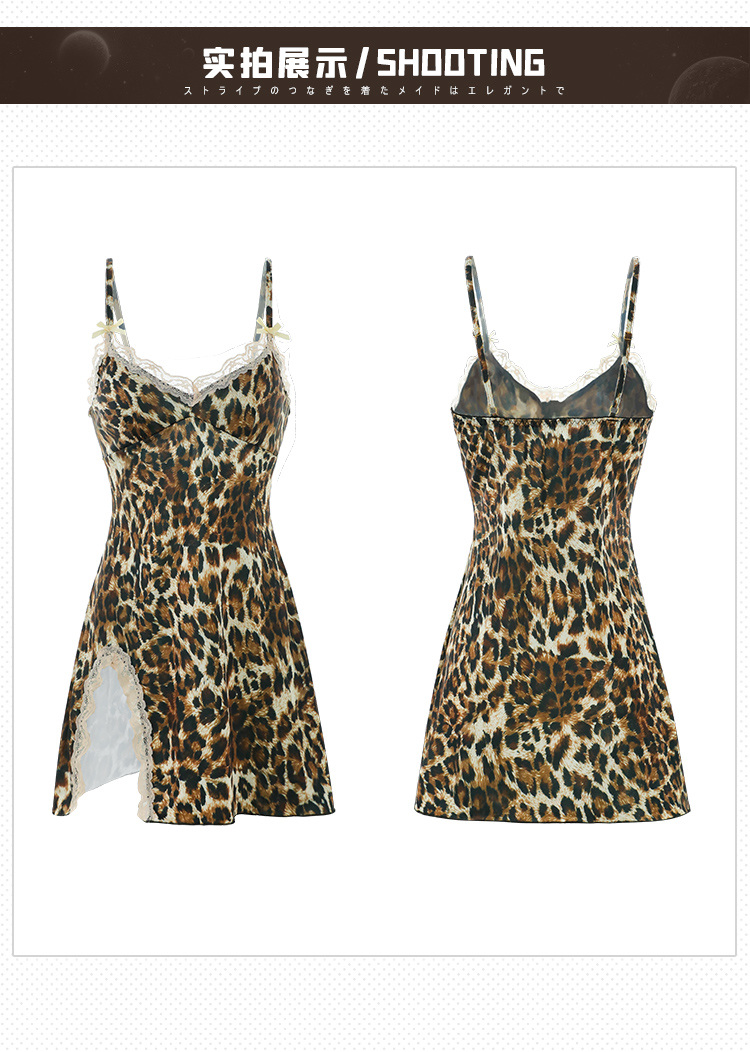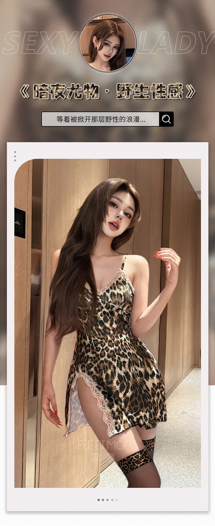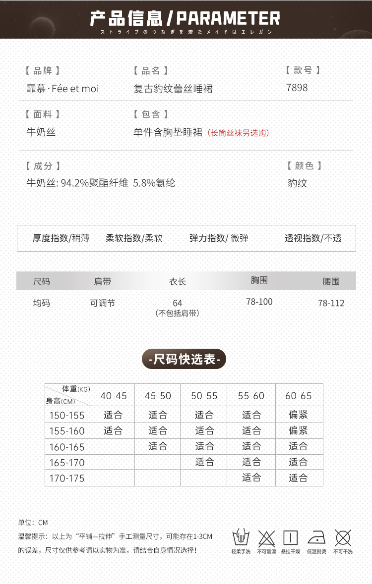 霏慕 复古豹纹蕾丝睡裙7898 情趣内衣免脱开档诱惑床上战袍性感激情套装蕾丝开衩豹纹睡裙