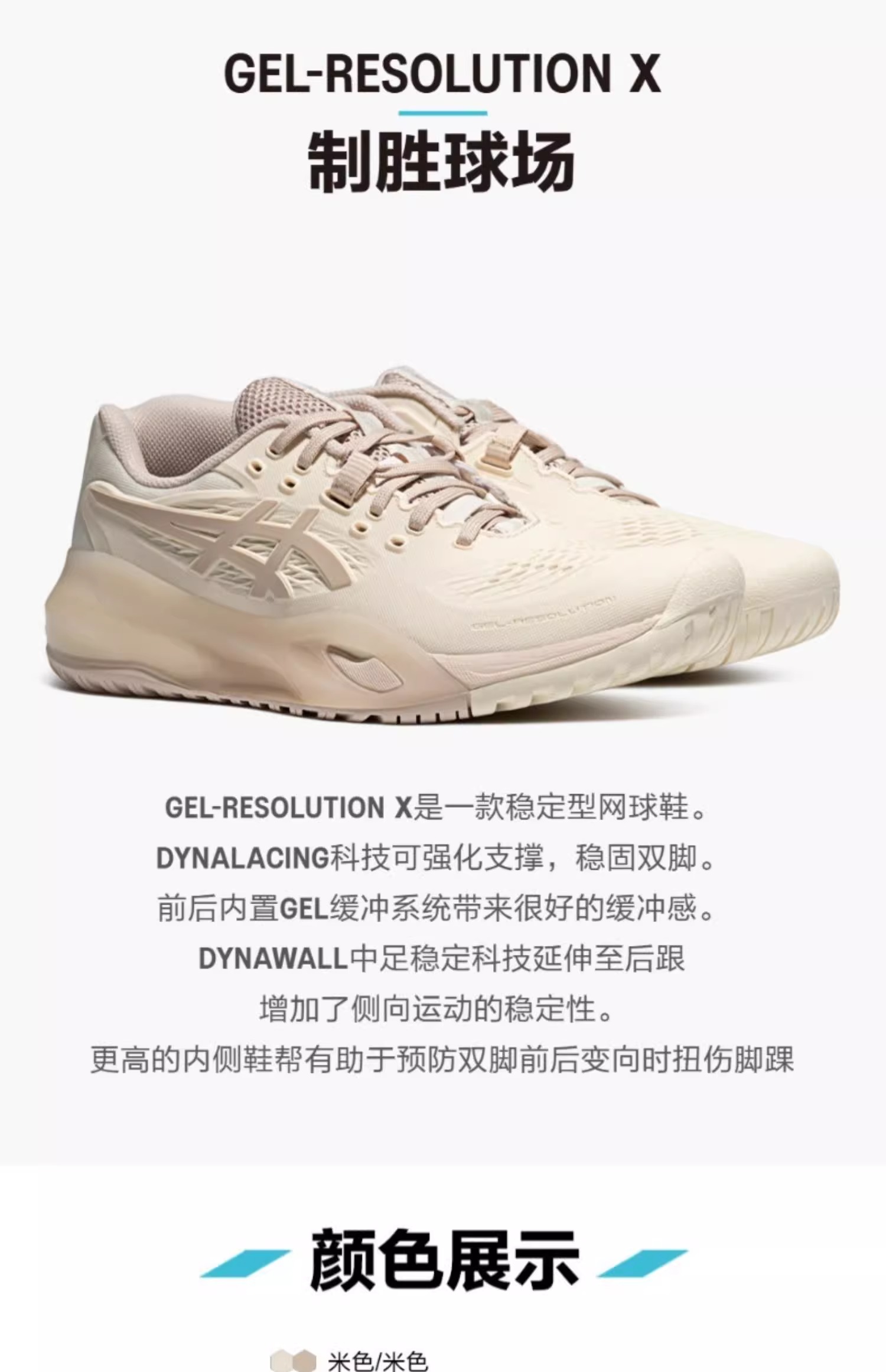 ASICS亚瑟士 RESOLUTION X 男女款 稳定舒适耐磨透气运动网球鞋