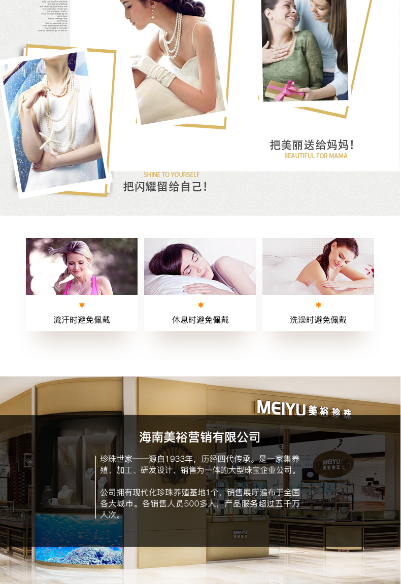 - 珍珠世家,代代相传。美裕珍珠,1933年起源于印尼,成长于海南岛。依托海南资源优势和自身专业优势,以经营南珠、南洋珠为主,专注于珍珠文化的挖掘和传播,把珍珠代表的爱意,永不间断地传承下去。