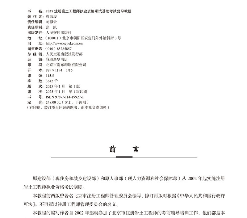 书名:【全3册】2025注册岩土工程师执业资格考试基础考试复习教程 基础题集 历年试卷