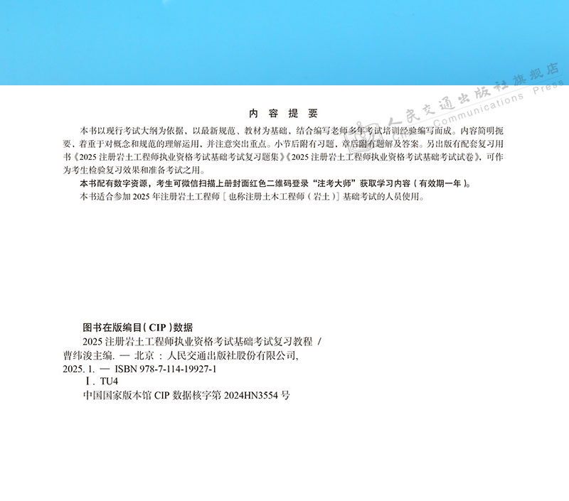 2025注册岩土工程师执业资格考试基础考试复习教程 基础题集 历年试卷 曹纬浚编 人民交通出版社旗舰店