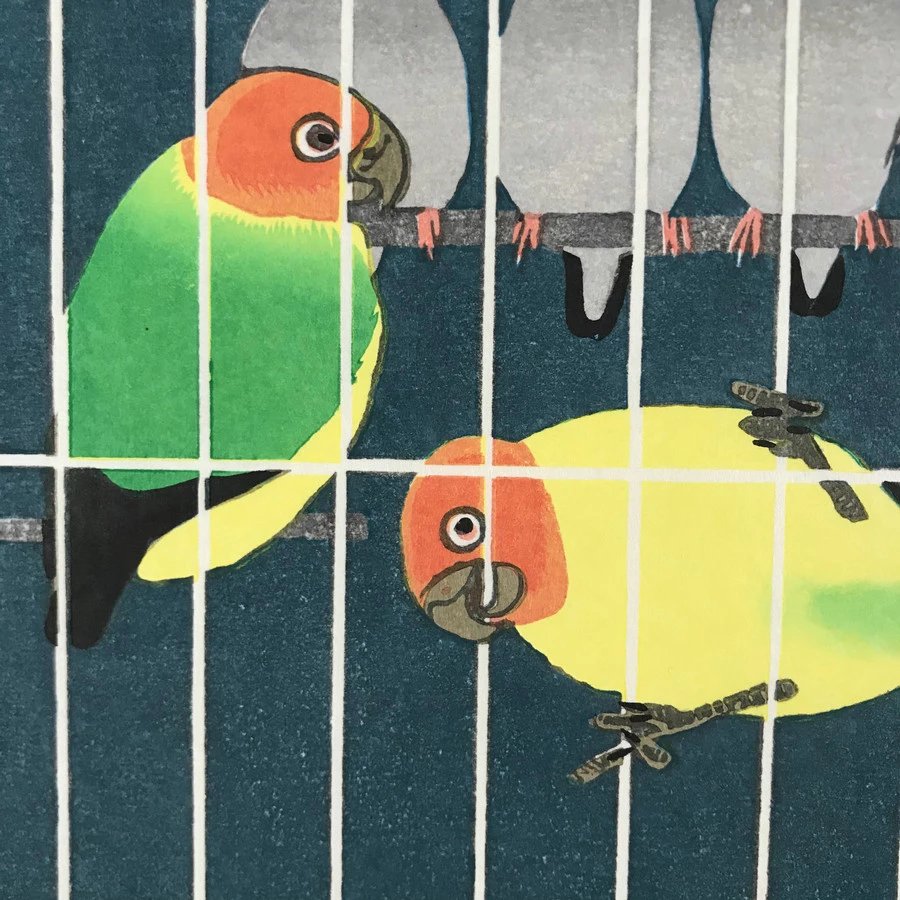 笠松紫浪 鸟 珍贵手工木刻浮世绘版画 无装裱