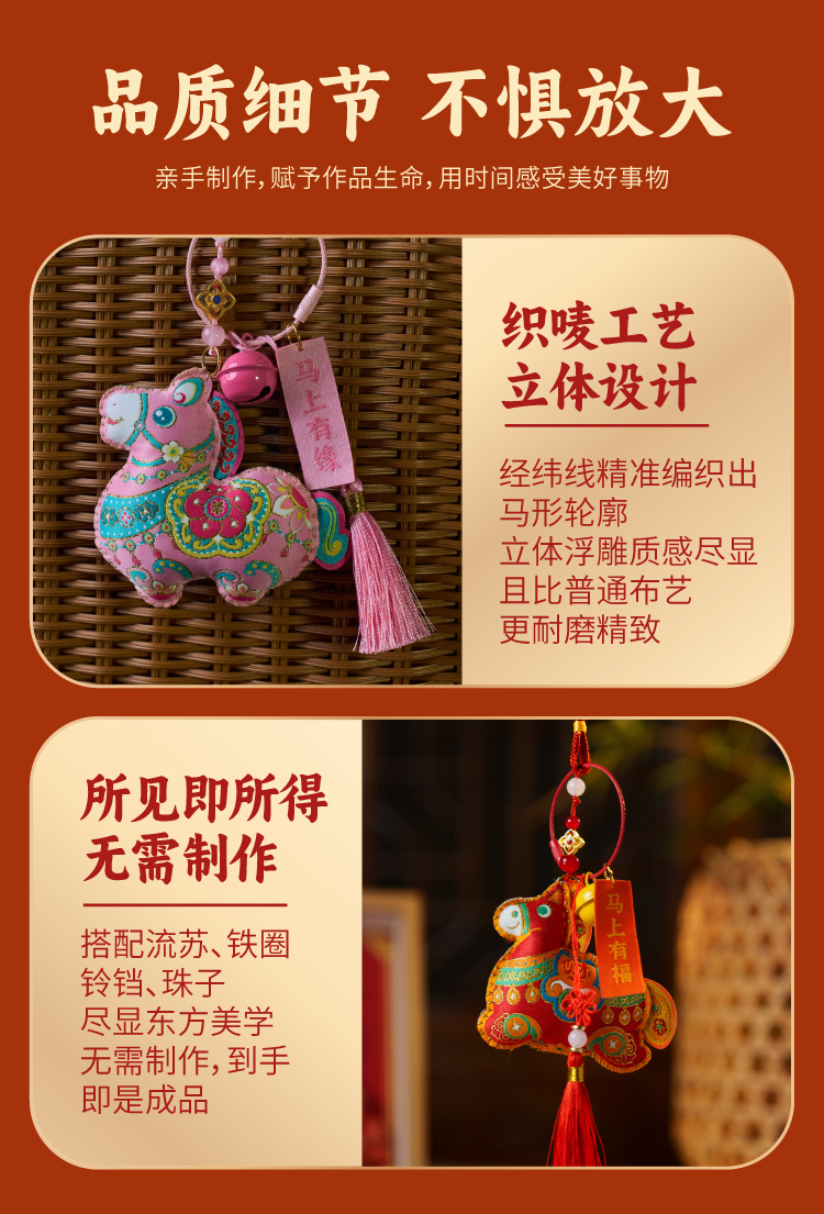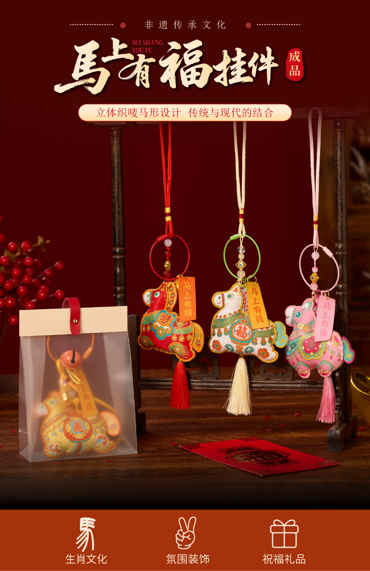 马年新年春节元旦活动织唛马上有福挂件成品手工diy儿童制作材料装饰