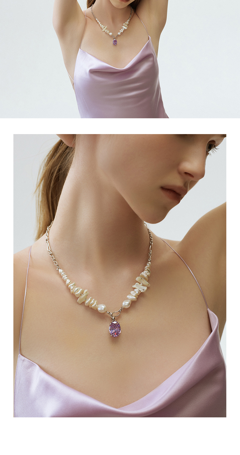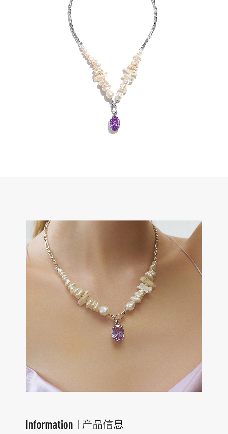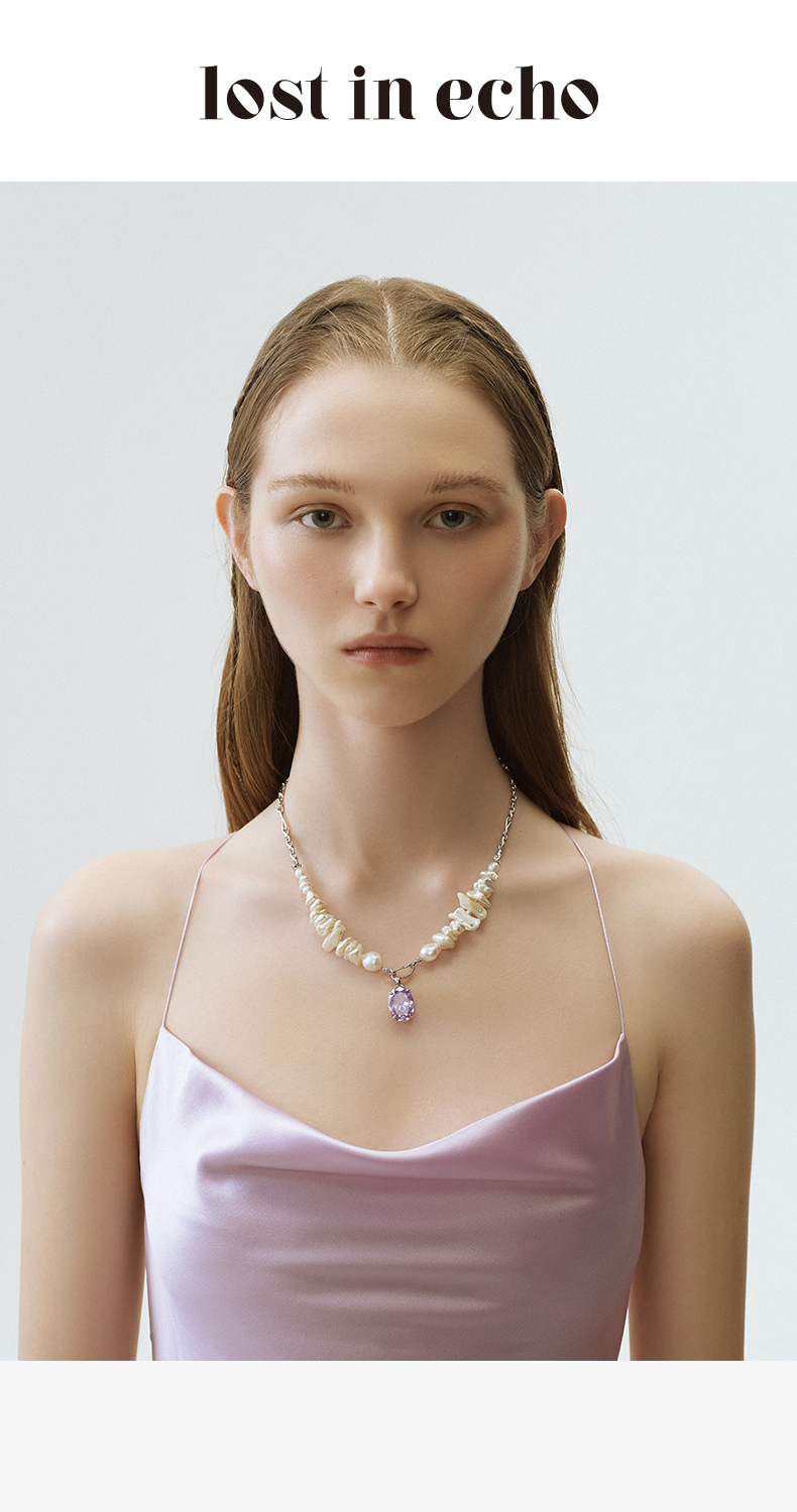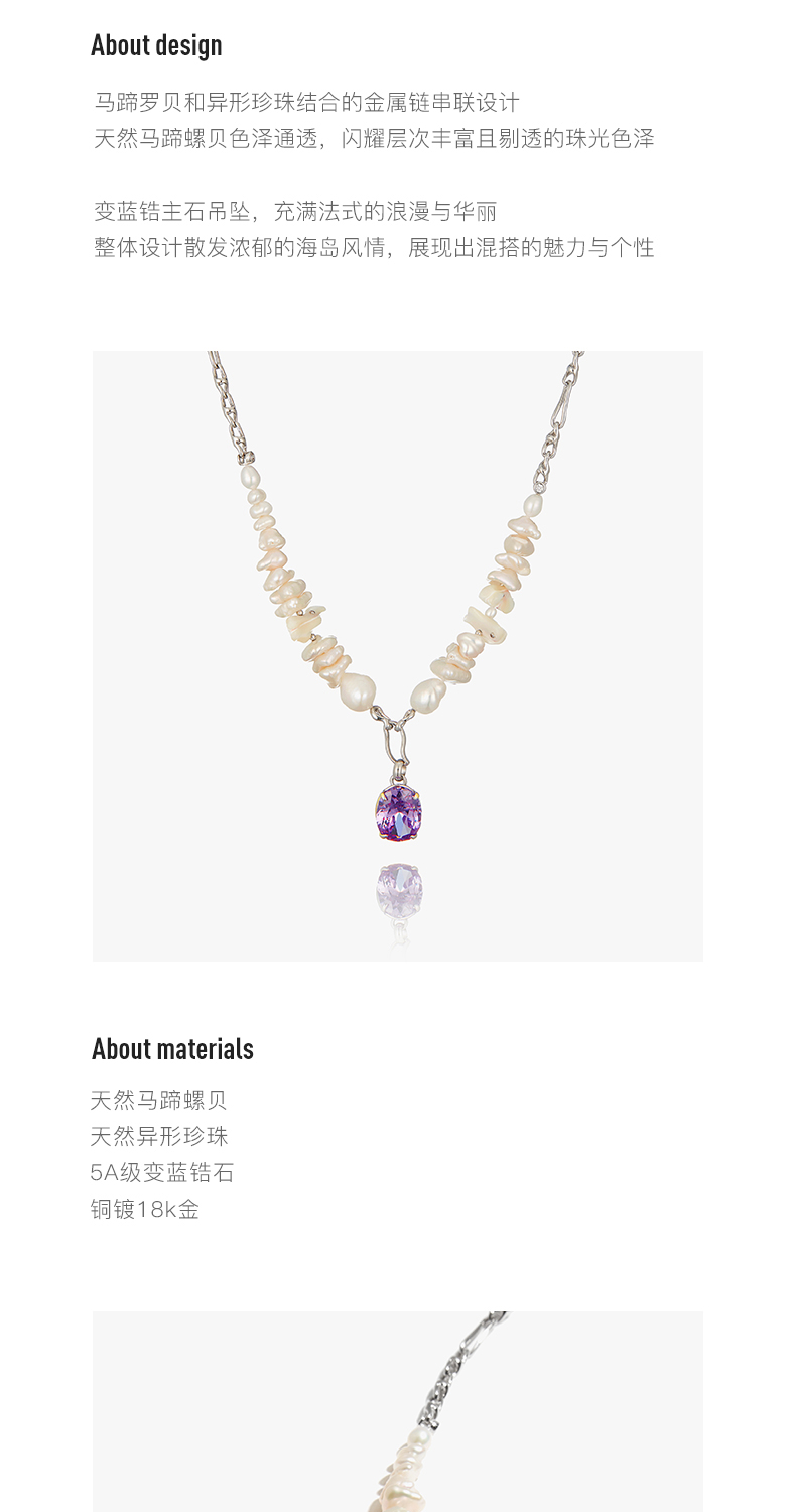lost in echo 设计师品牌 新款 天然马蹄螺贝壳锆石法式珍珠项链