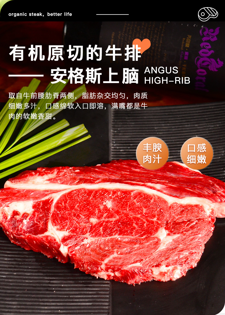 【小区直配】国产新疆天莱香牛安格斯有机鲜上脑牛排A