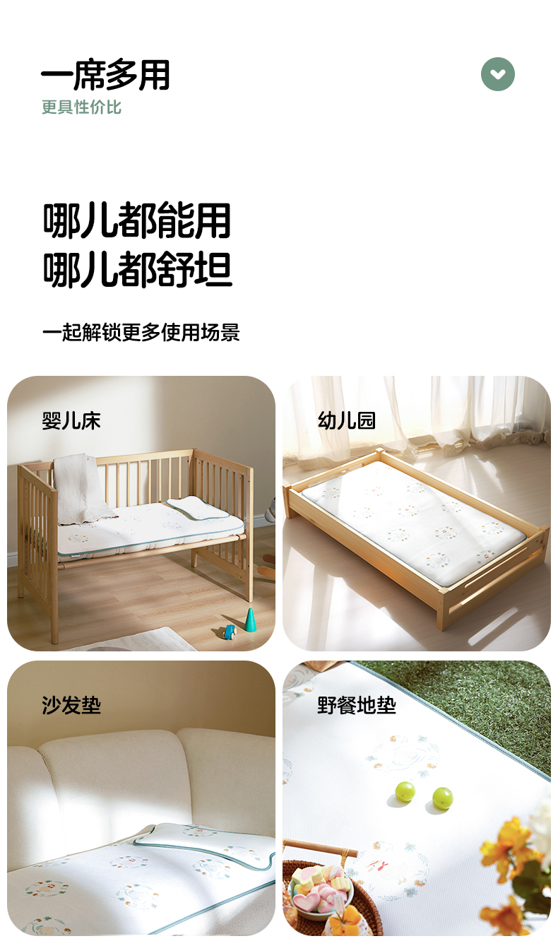 可优比(KUB)婴儿凉席宝宝婴儿床冰丝透气可机洗儿童夏季凉席