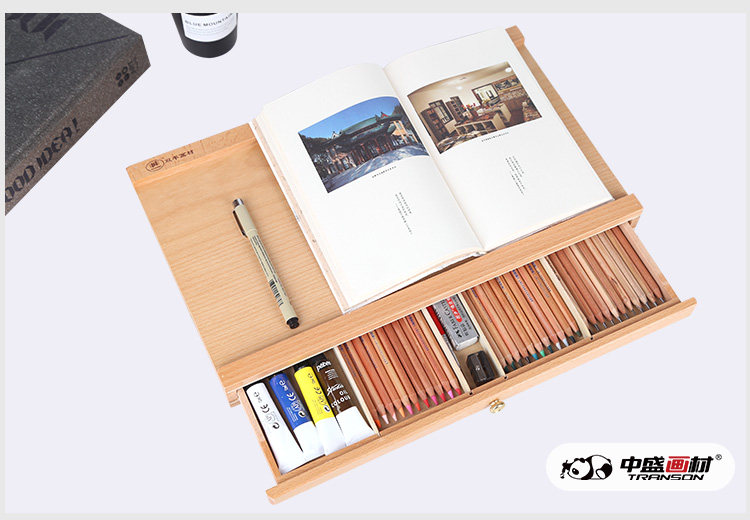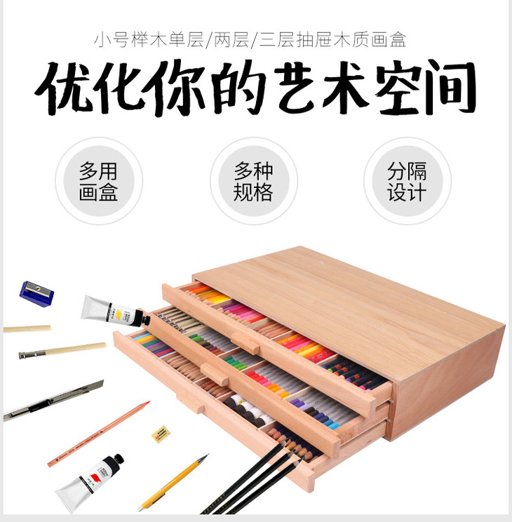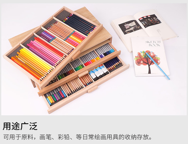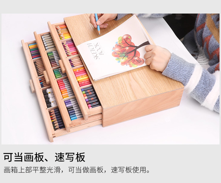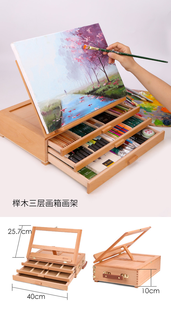 榉木桌面台式抽屉儿童卷纸画架画板套装木制折叠写生水彩油画画箱