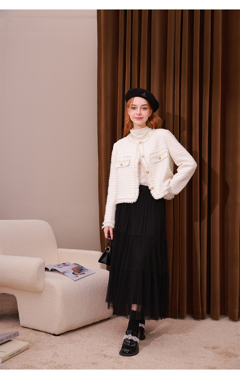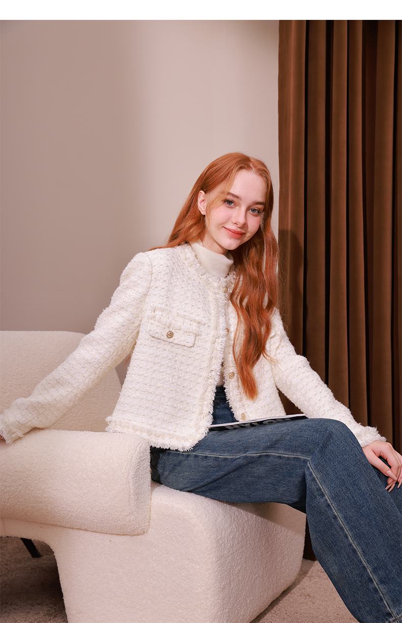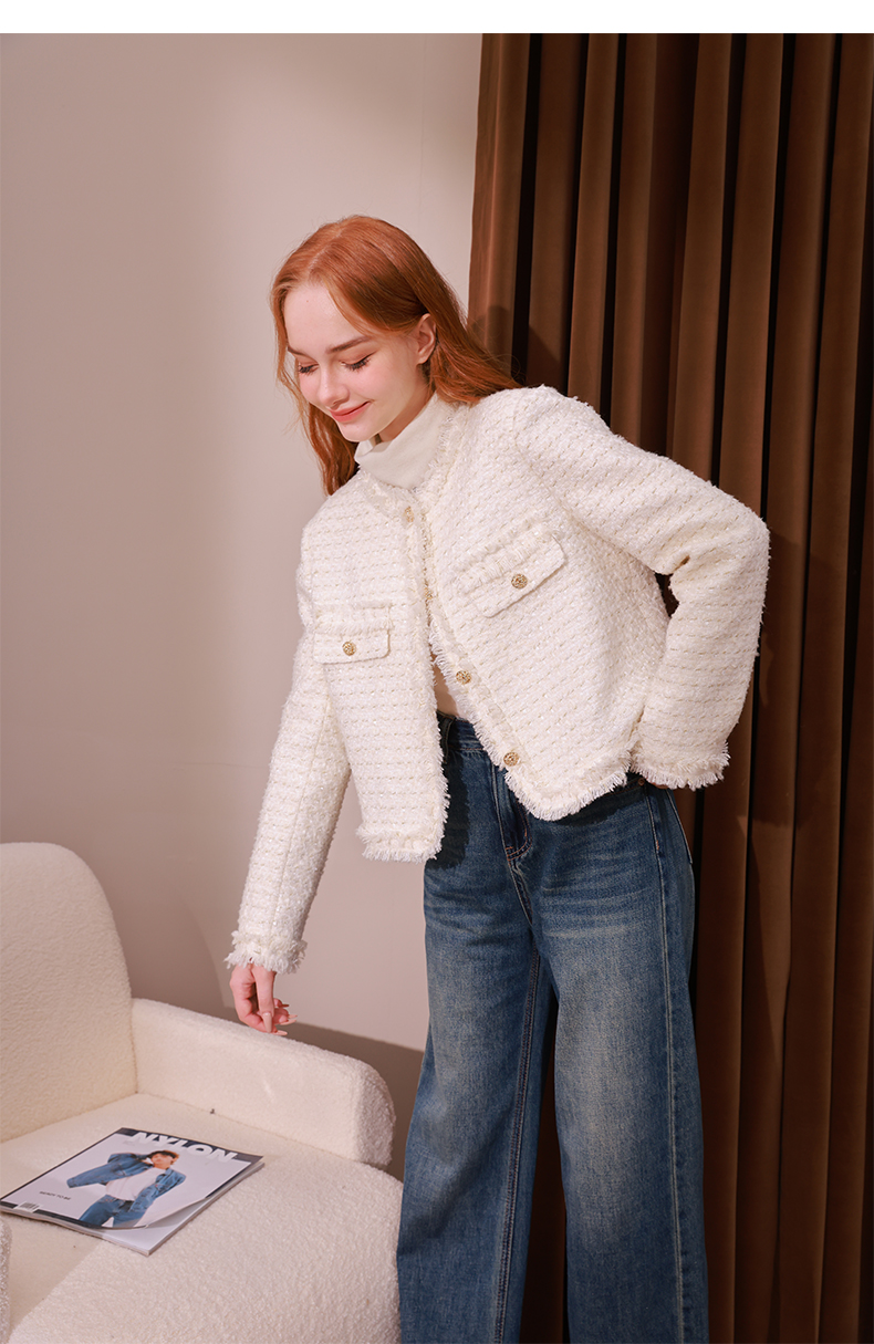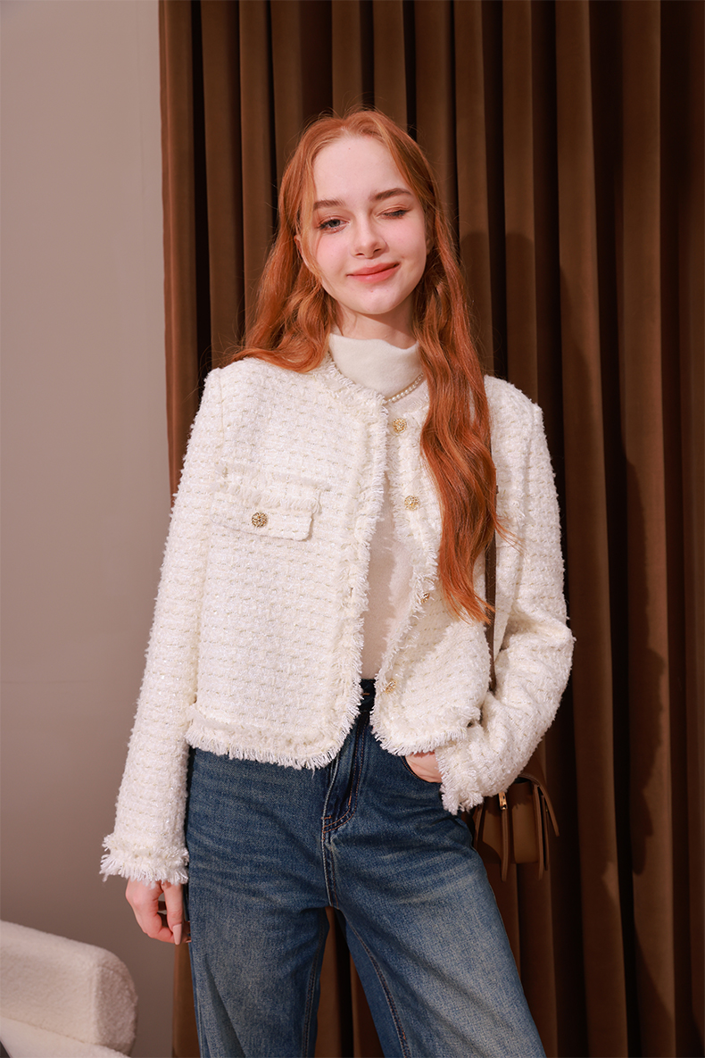 mc2法式小香风外套女2023秋冬新款名媛气质款重工花边高级感上衣