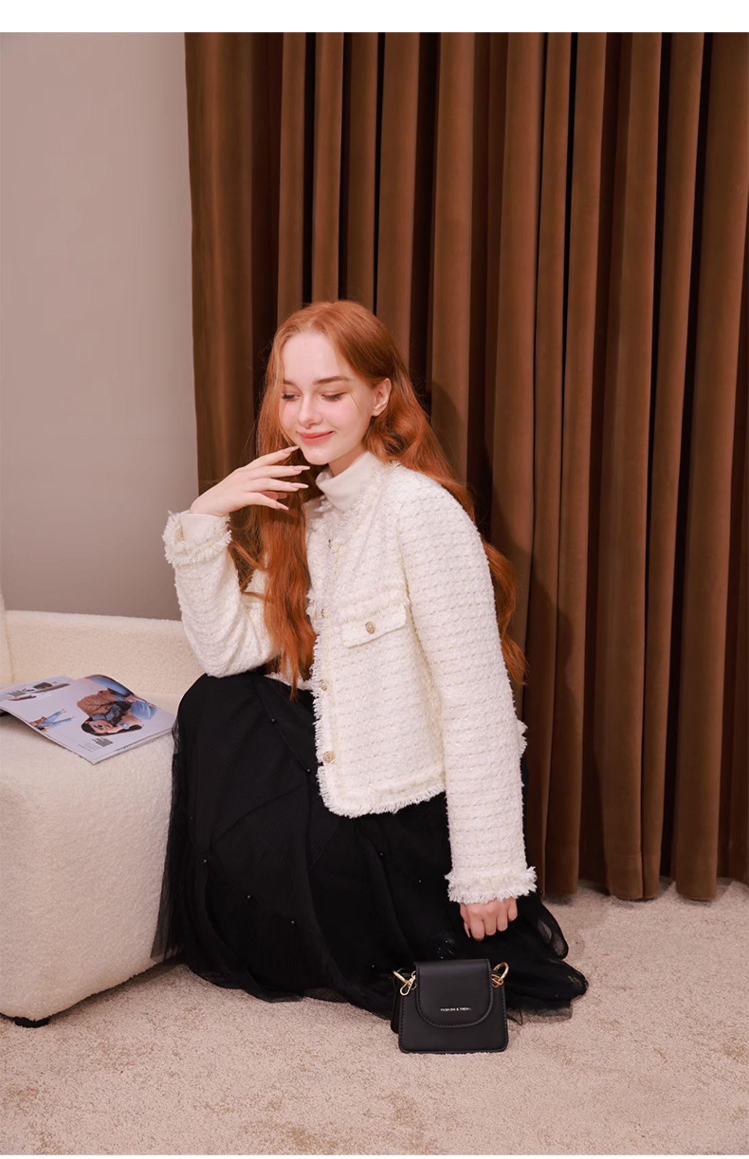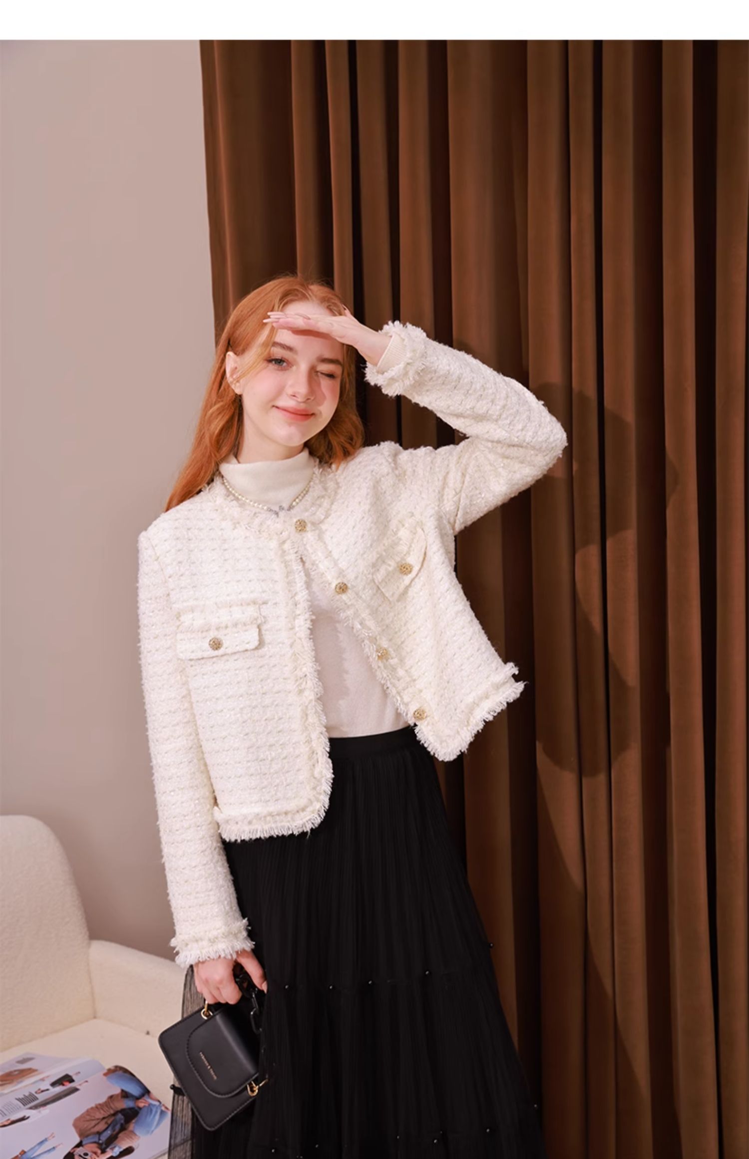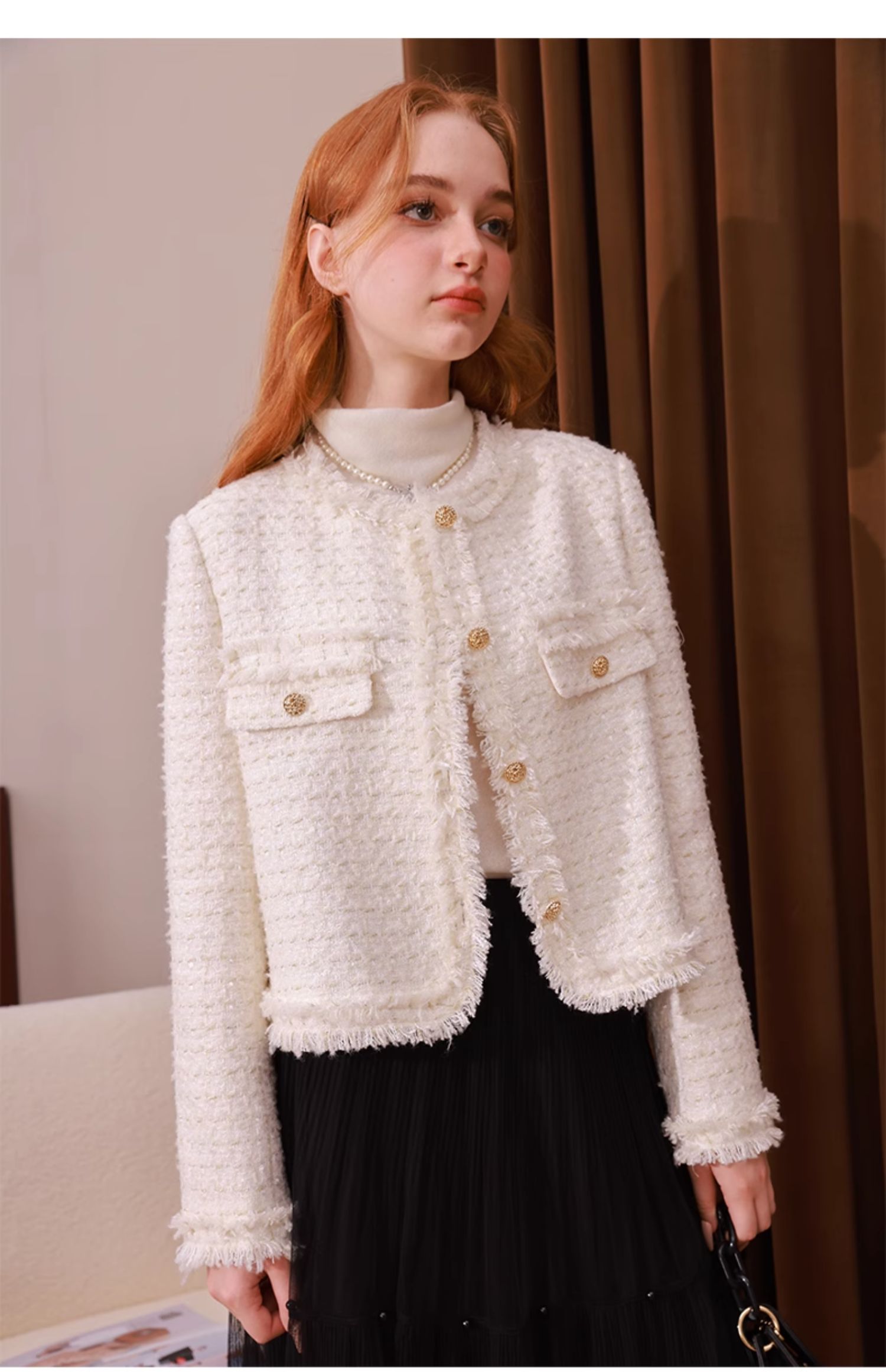 mc2法式小香风外套女2023秋冬新款名媛气质款重工花边高级感上衣