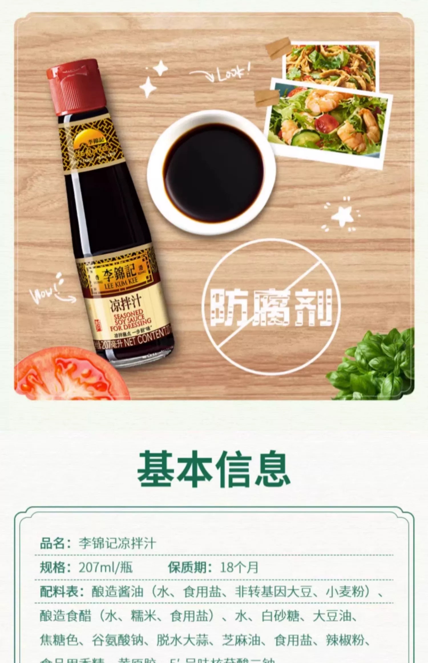 李锦记 凉拌汁207ml 常州盐业有限公司
