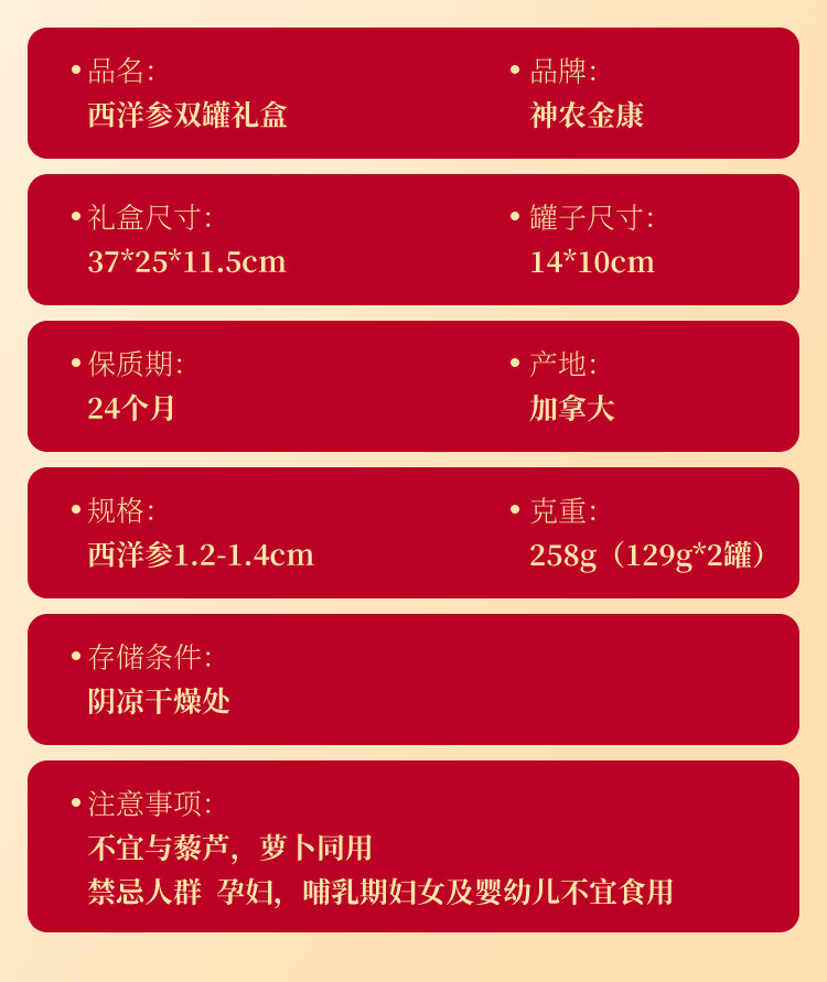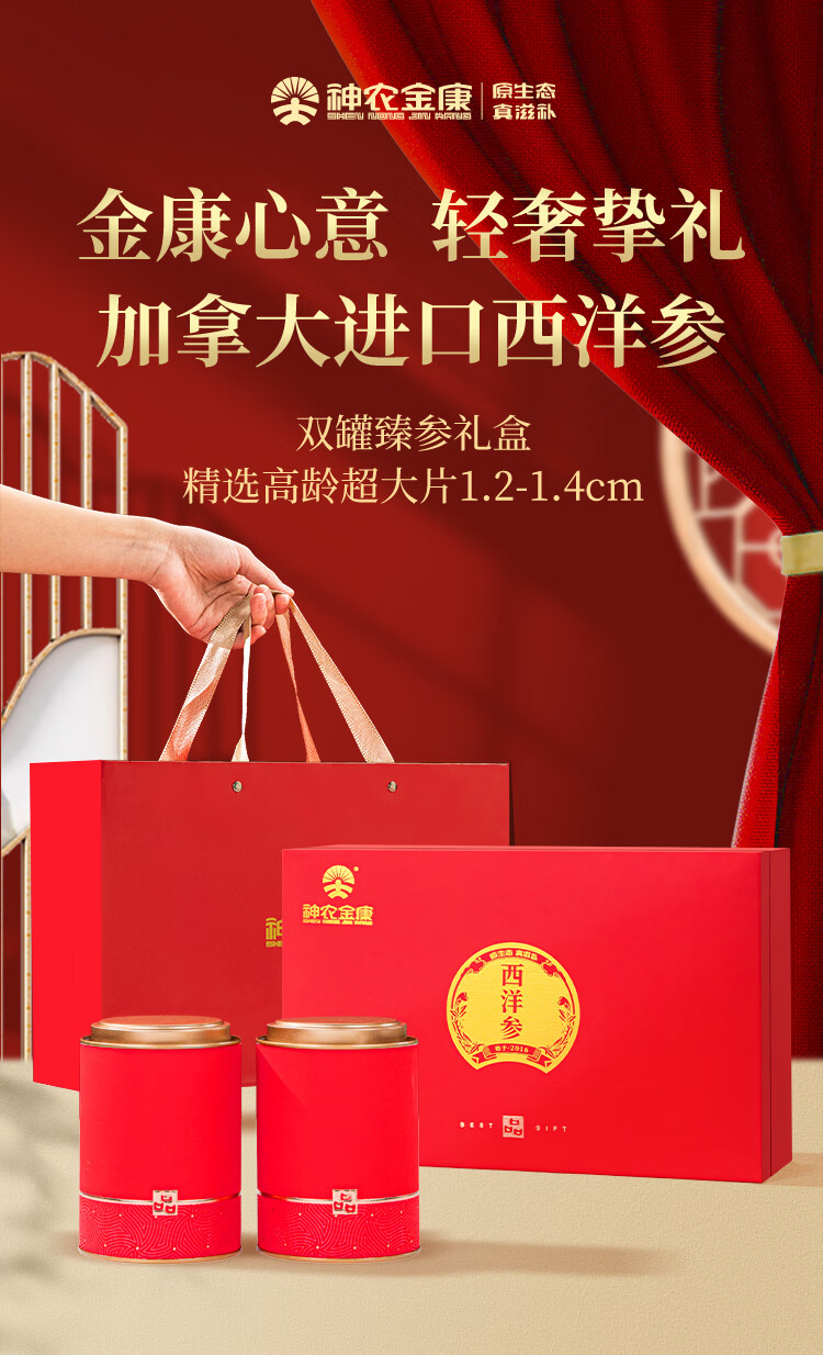 神农金康 加拿大西洋参礼盒258g 滋补营养品 送长辈实用礼物