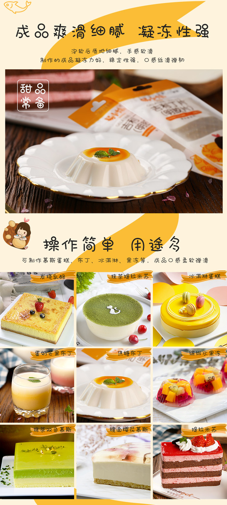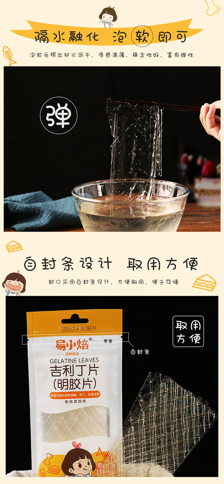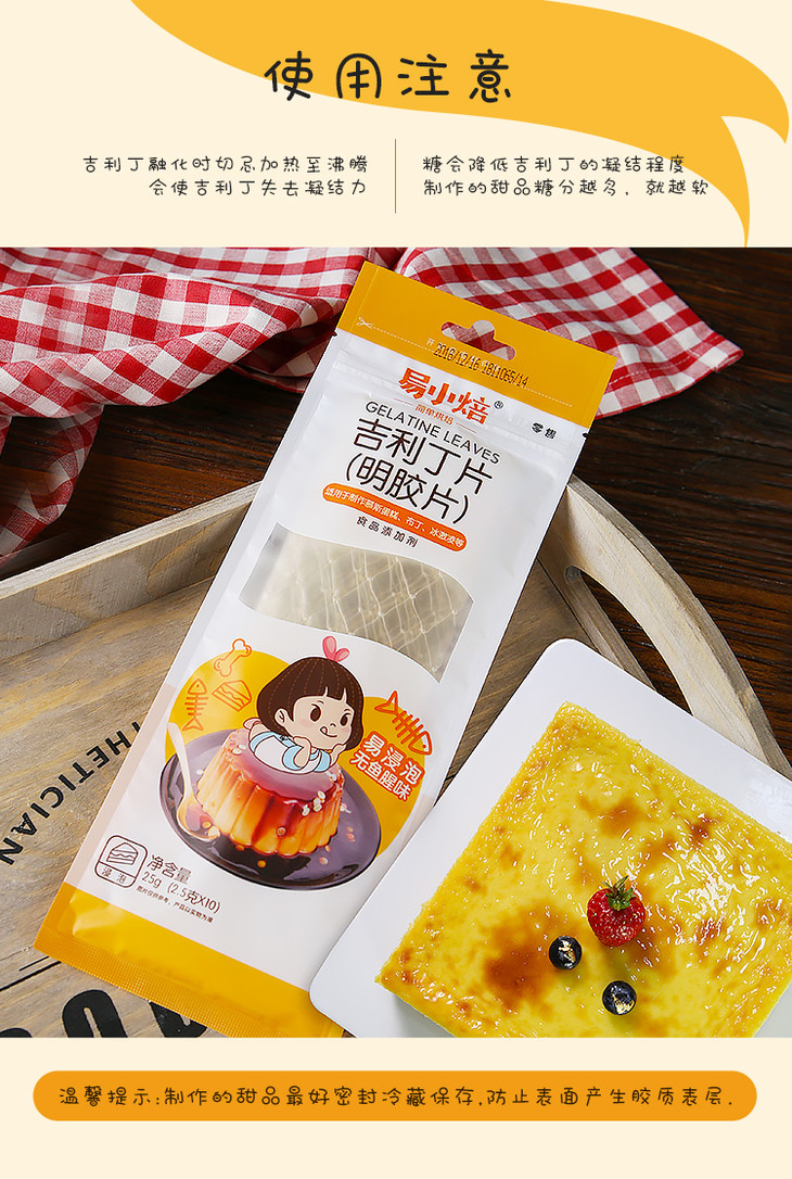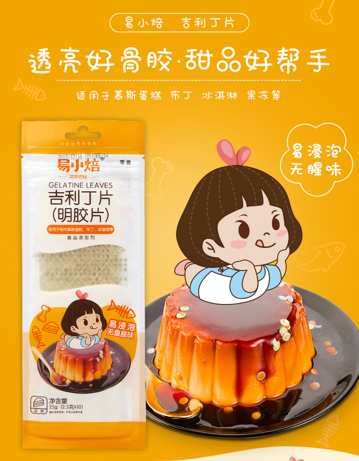 易小焙吉利丁片2.5g*10片装 家用鱼胶明胶粉 慕斯蛋糕布丁果冻粉烘焙原料