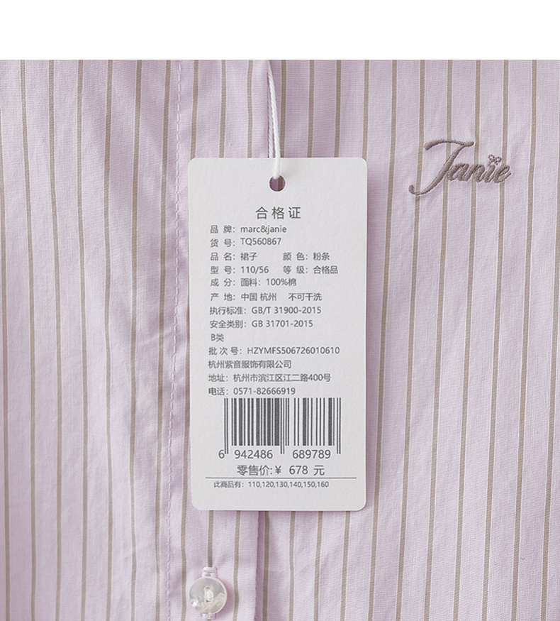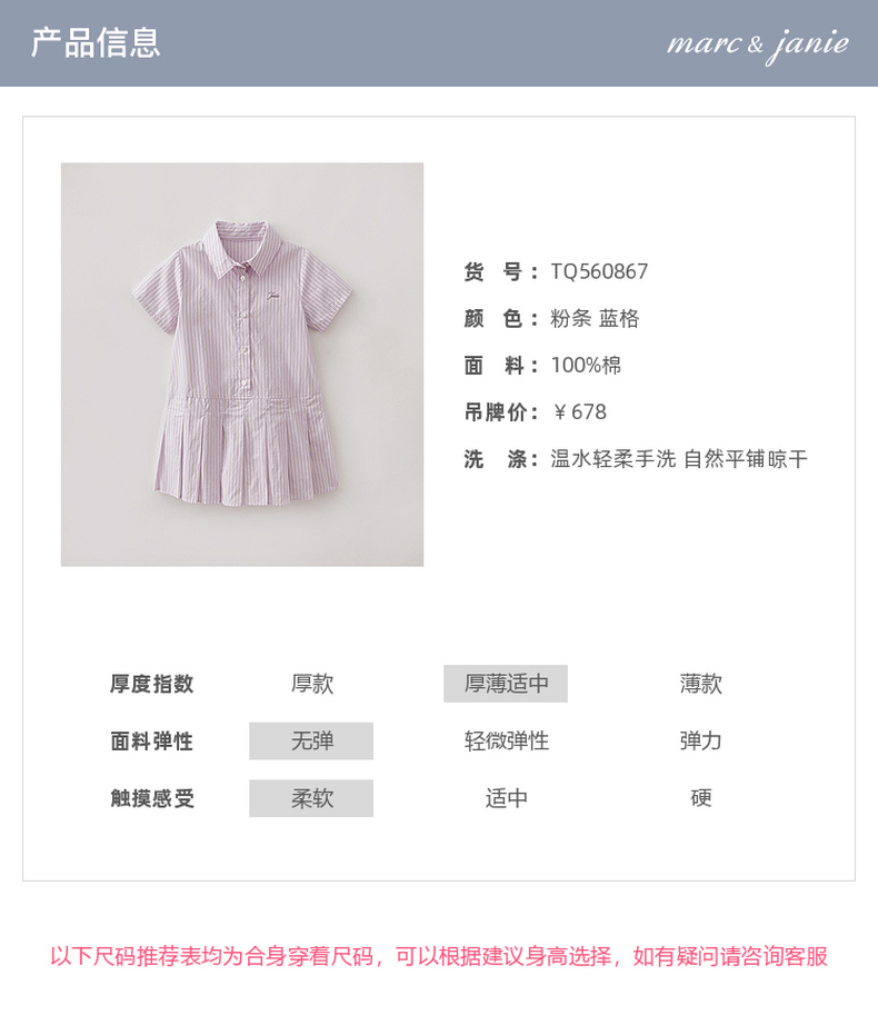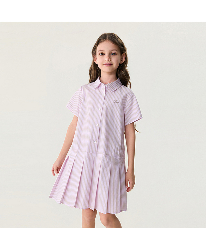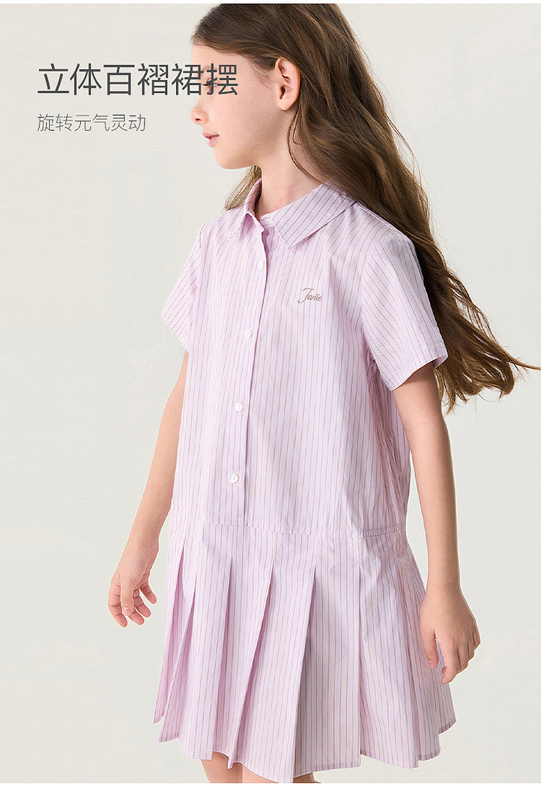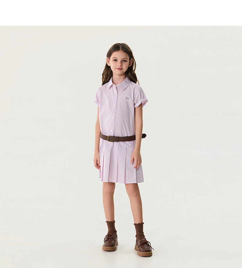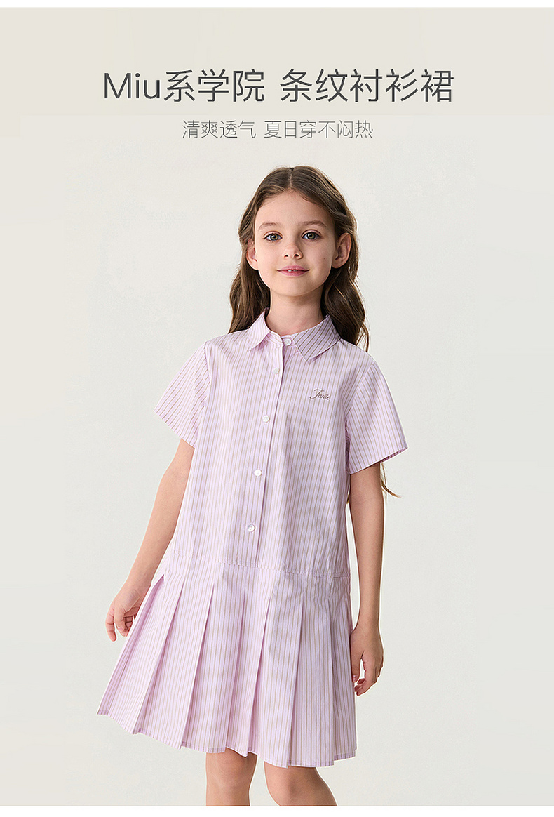 马克珍妮Miu系学院女童条纹衬衫裙2026年夏装新款560867