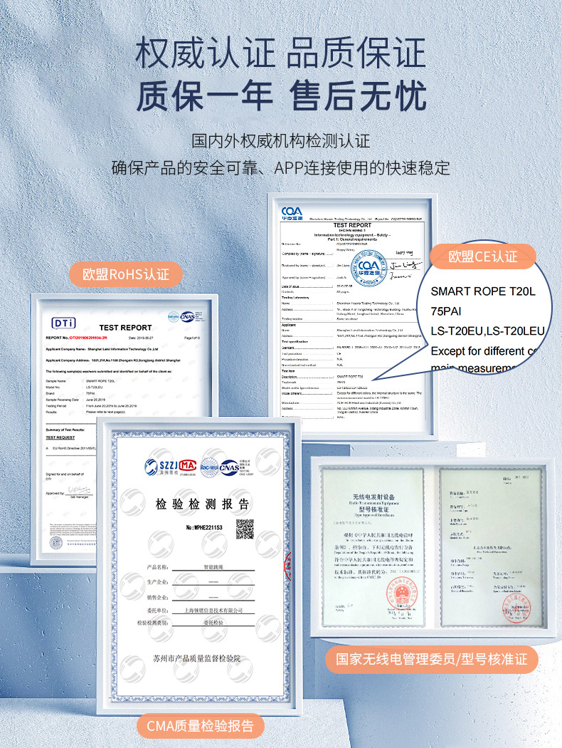 75派双轴承智能跳绳T20L 专有APP成人儿童健身燃脂蓝牙计数中考训练手并语音播报