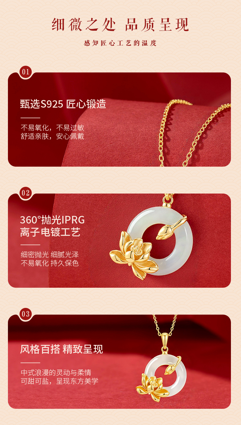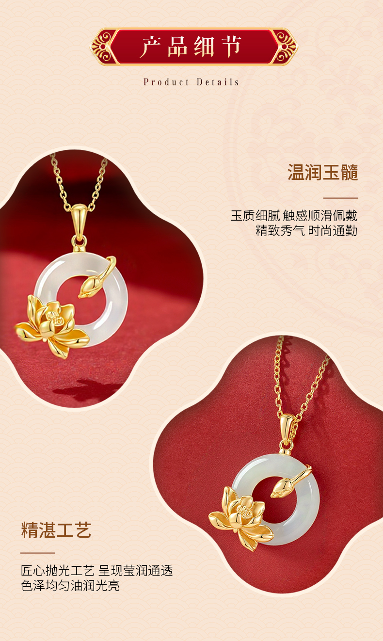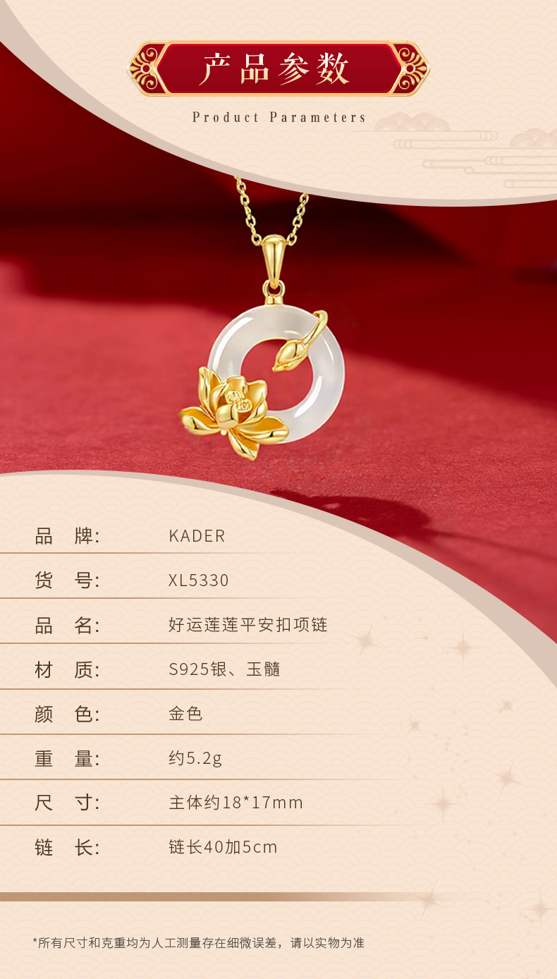 卡蒂罗KADER 925银新中式国风寓意美好 荷花平安扣项链 招财纳福事事如意可调节锁骨链#好运 玉髓 项链 女款