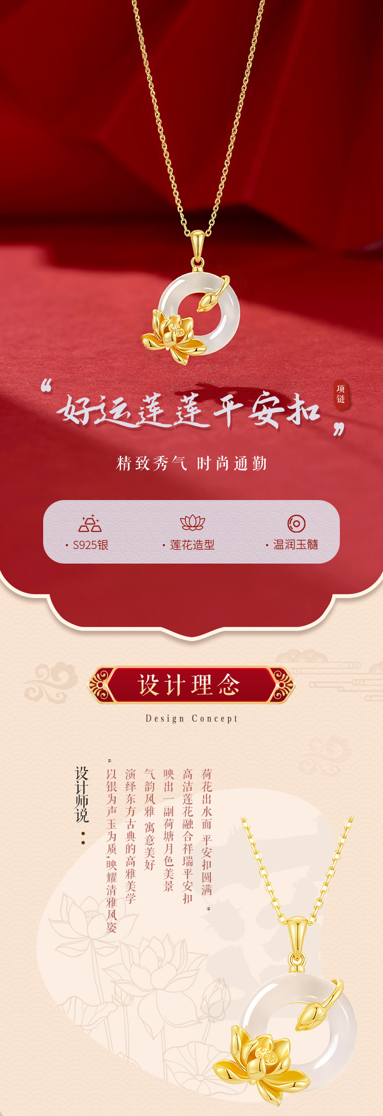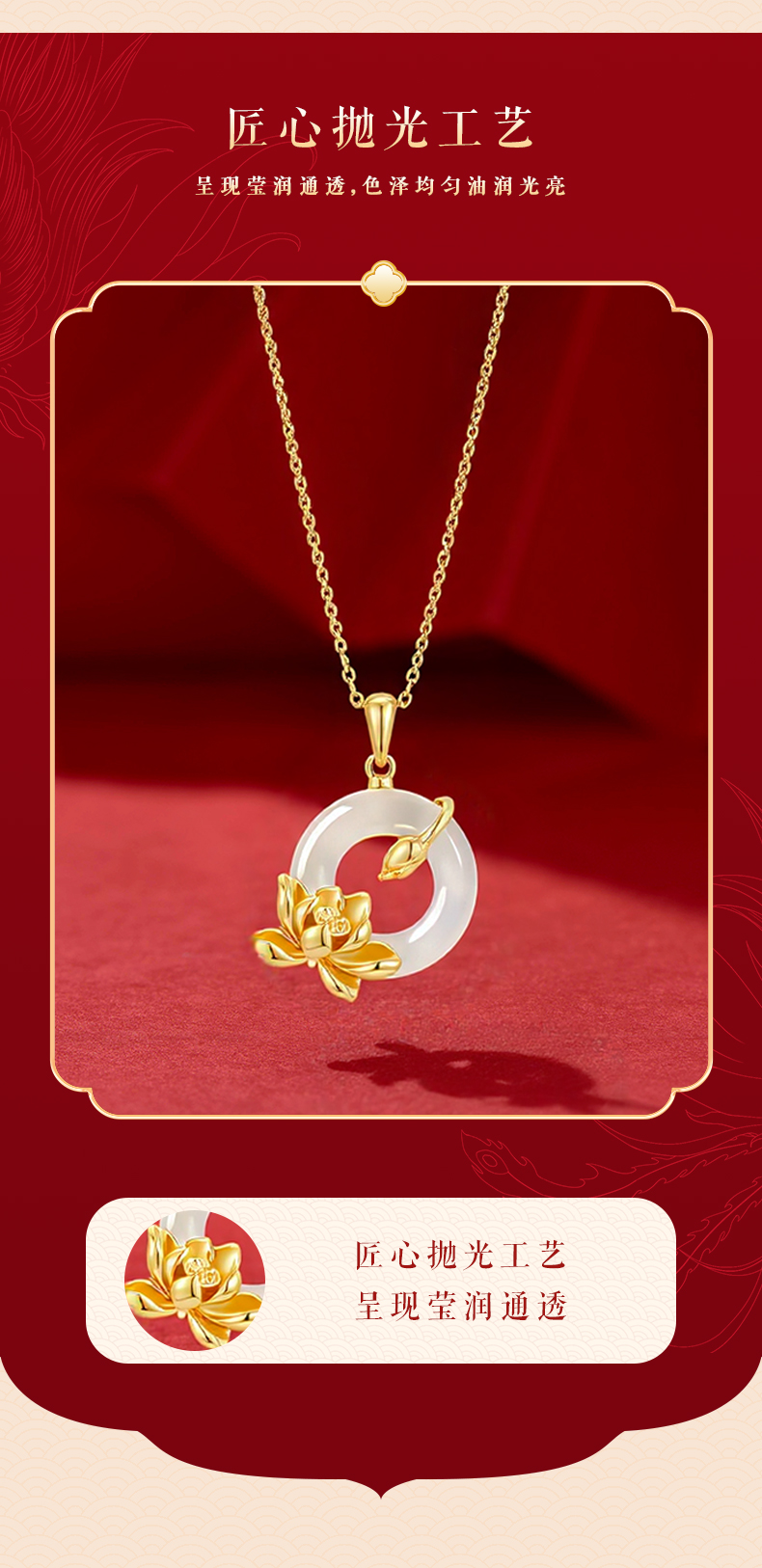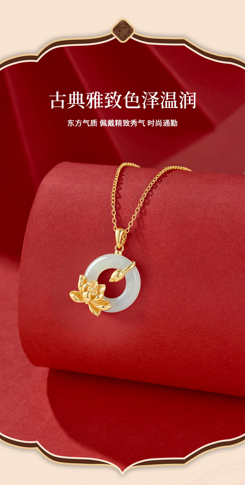 卡蒂罗KADER 925银新中式国风寓意美好 荷花平安扣项链 招财纳福事事如意可调节锁骨链#好运 玉髓 项链 女款