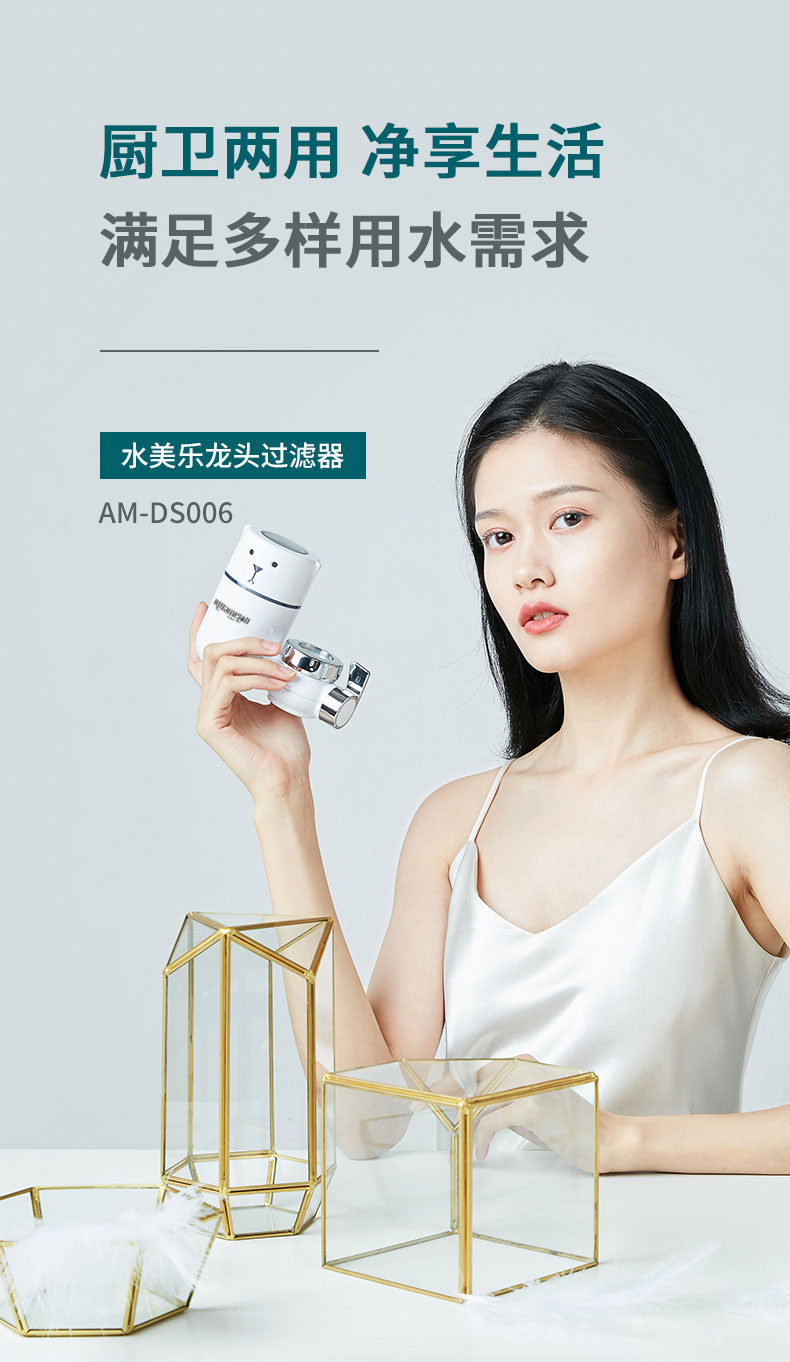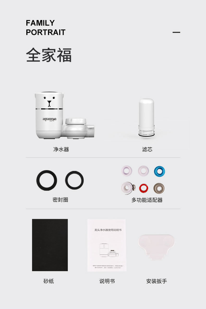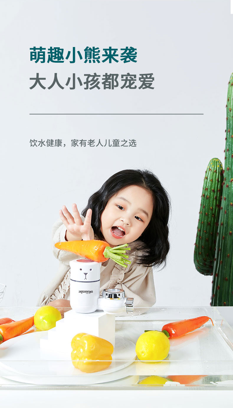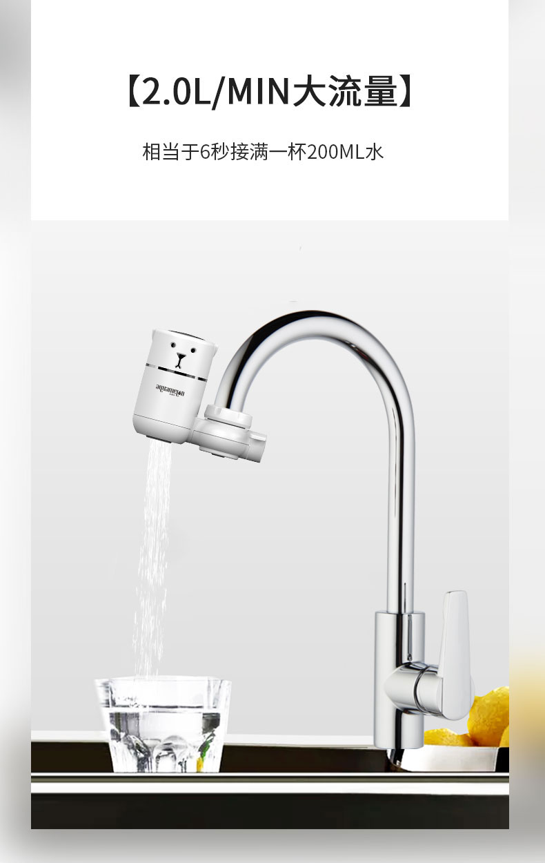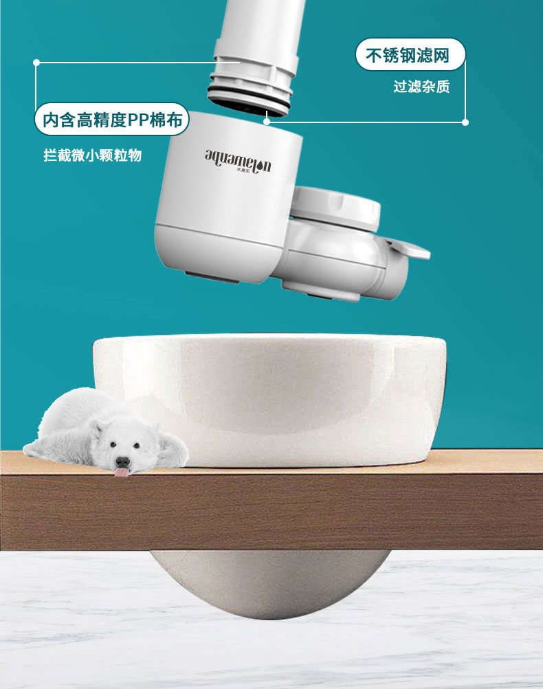【厨卫两用·易安装·出水快·可调节·可视窗口】水美乐·呆萌小白熊水龙头过滤器