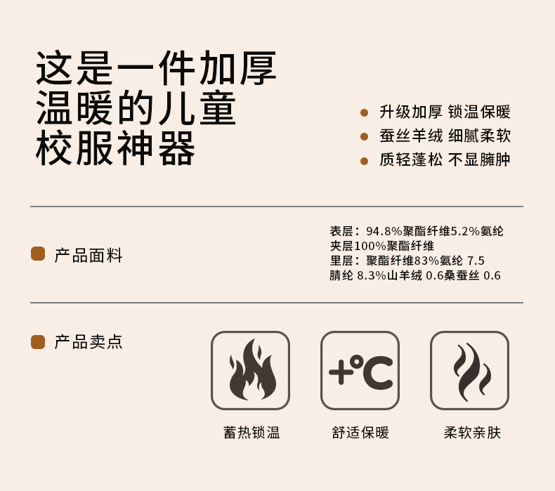 【加厚蚕丝羊绒保暖上衣】蚕丝羊绒夹层,温暖过冬,可外穿设计