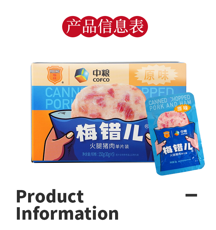 【中粮梅林】梅错儿午餐肉 30g*5片/盒