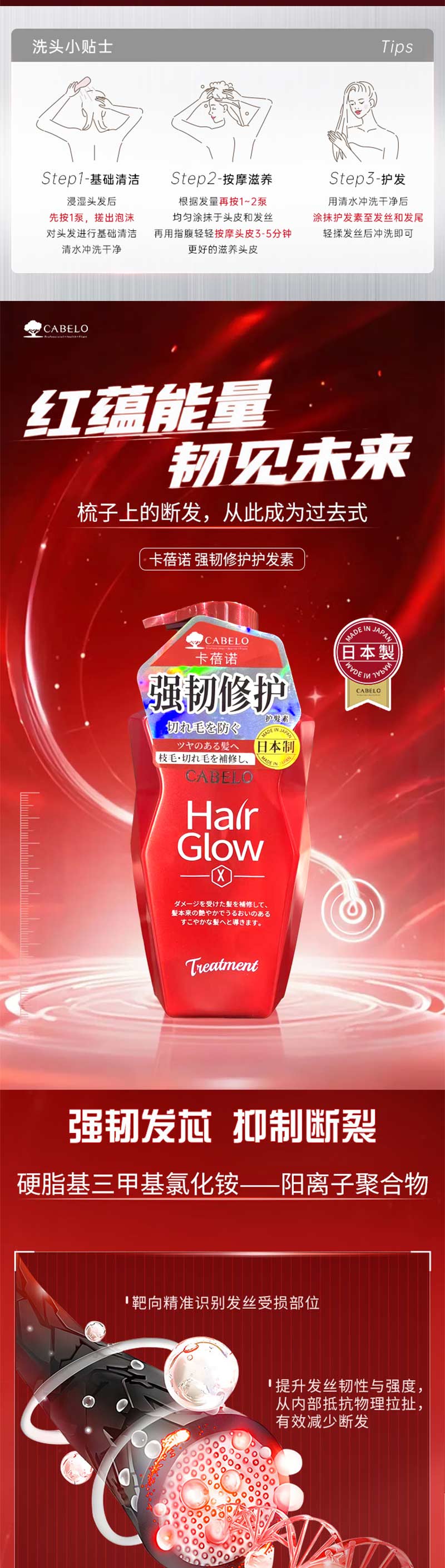 日本进口卡蓓诺强韧防脱洗发水丨强韧修护护发素350ml