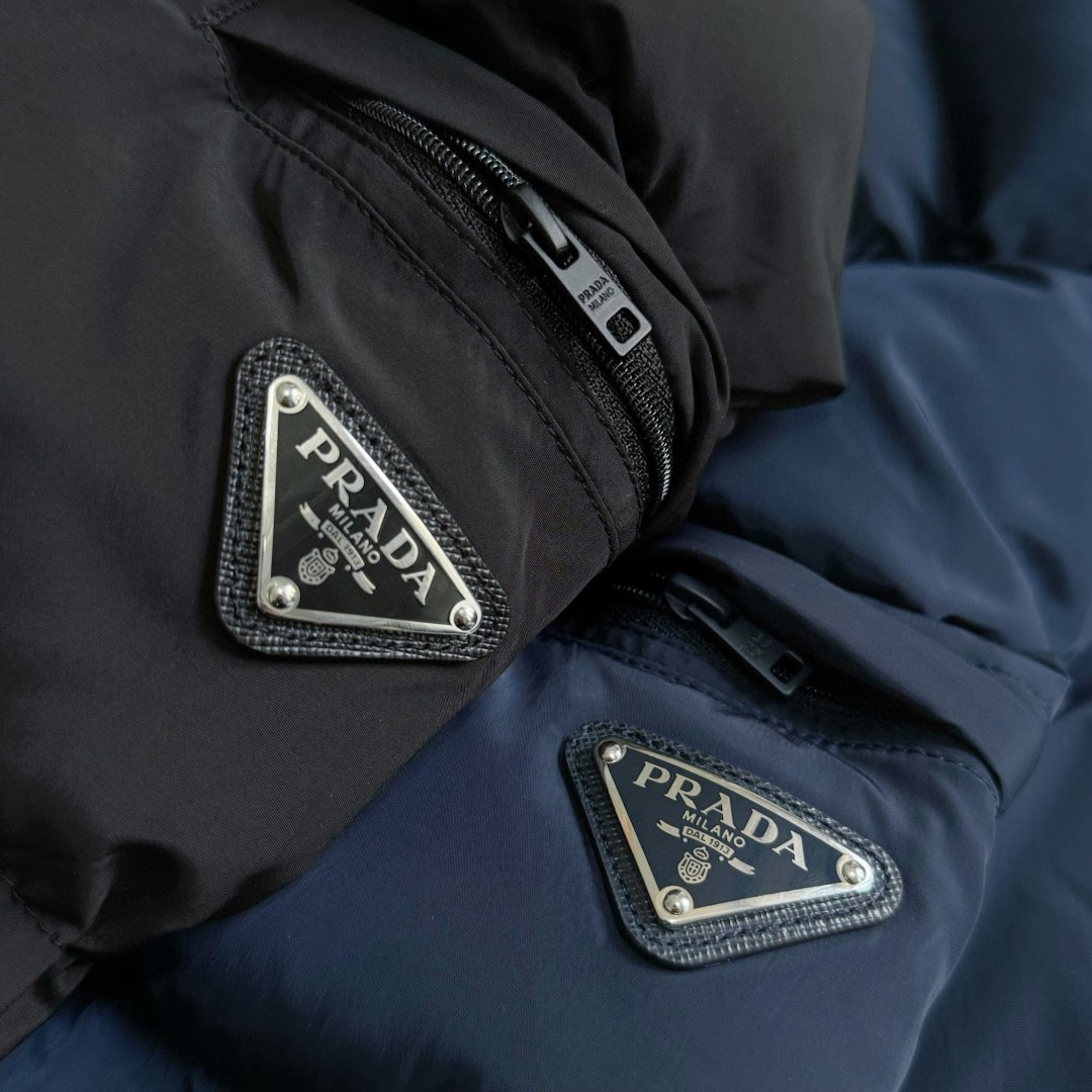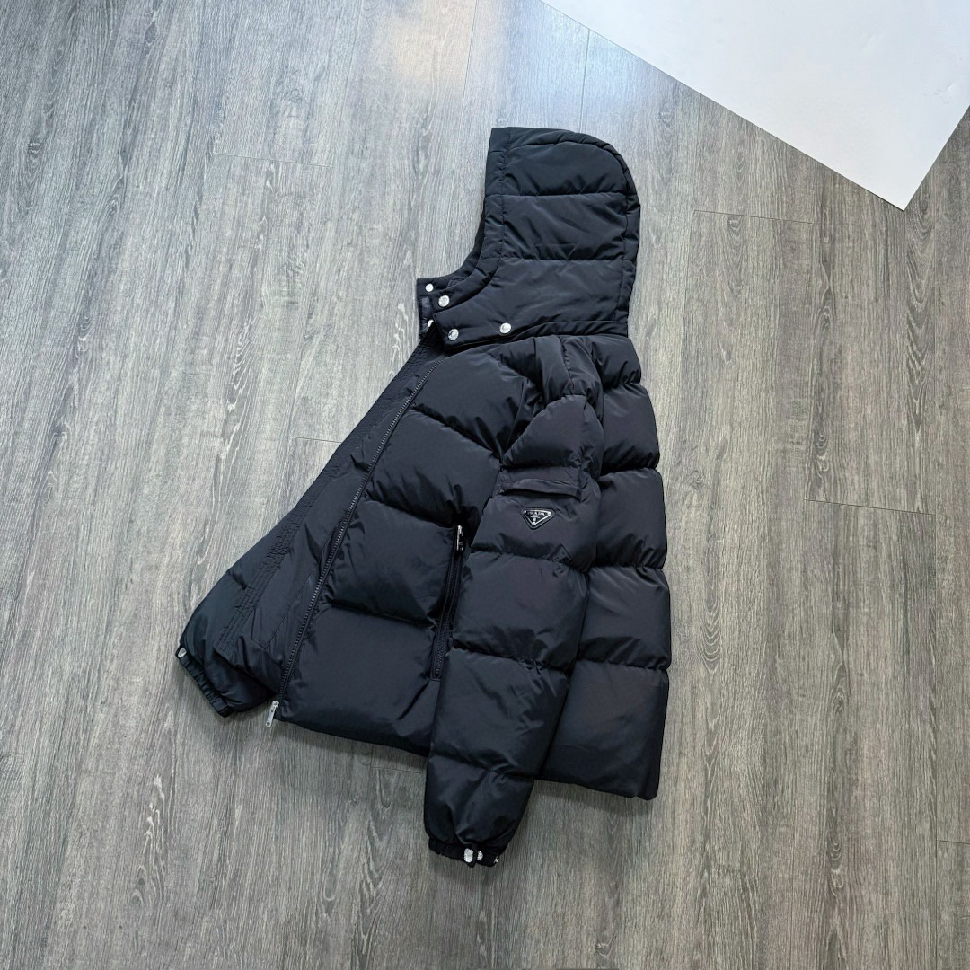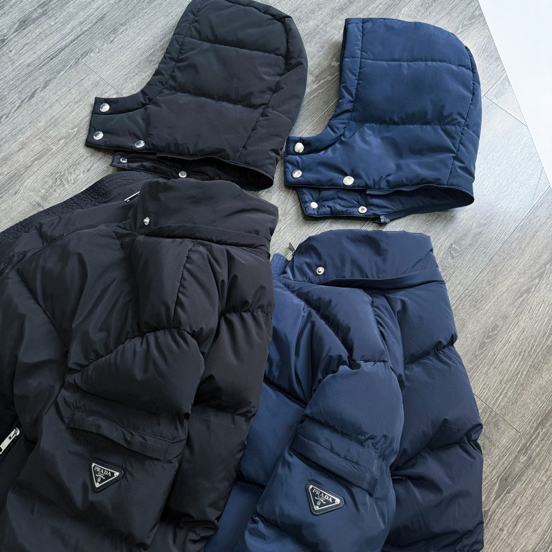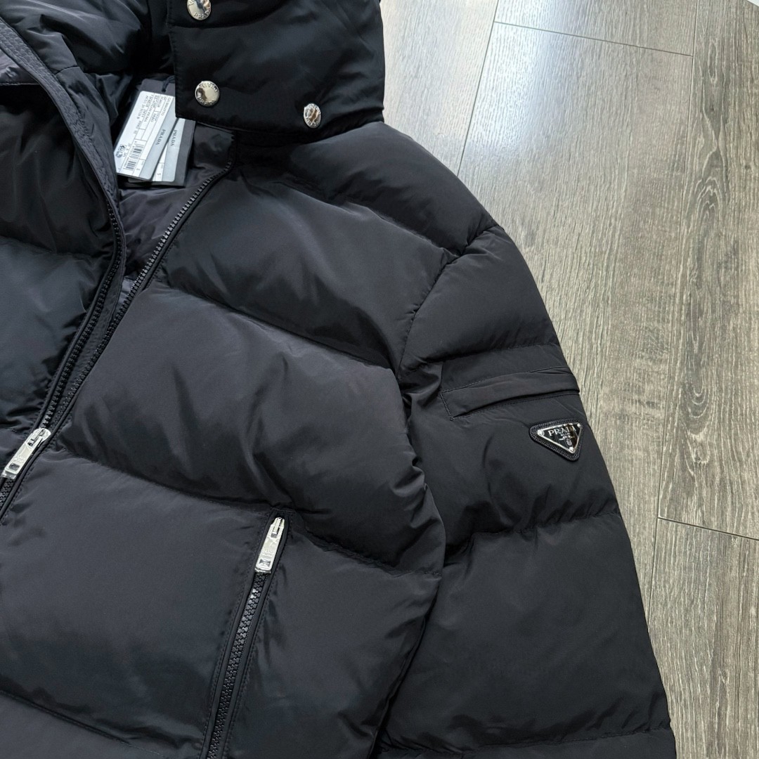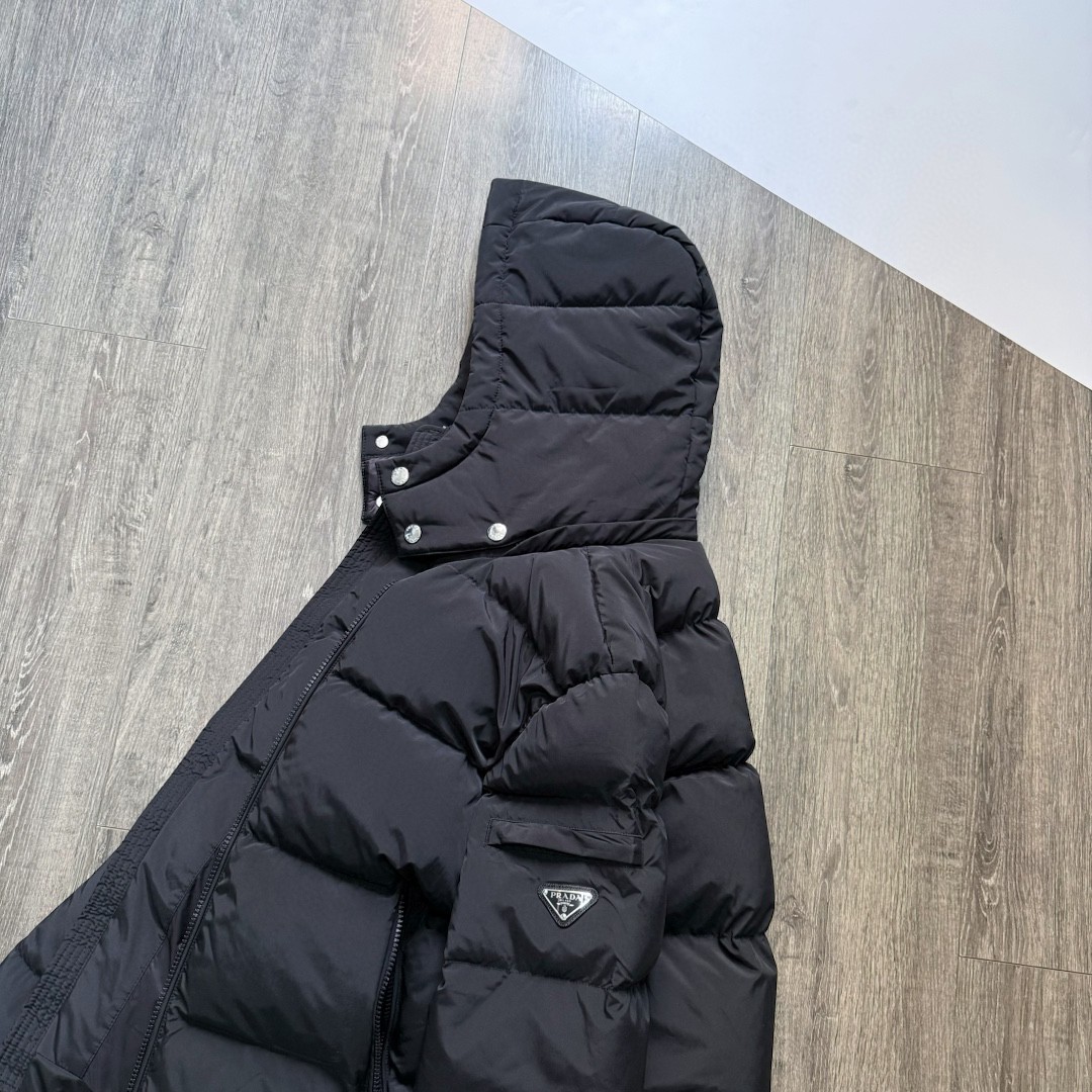 普拉达绗缝抗寒高蓬可拆卸帽棉服 再生尼龙防风拒水面料