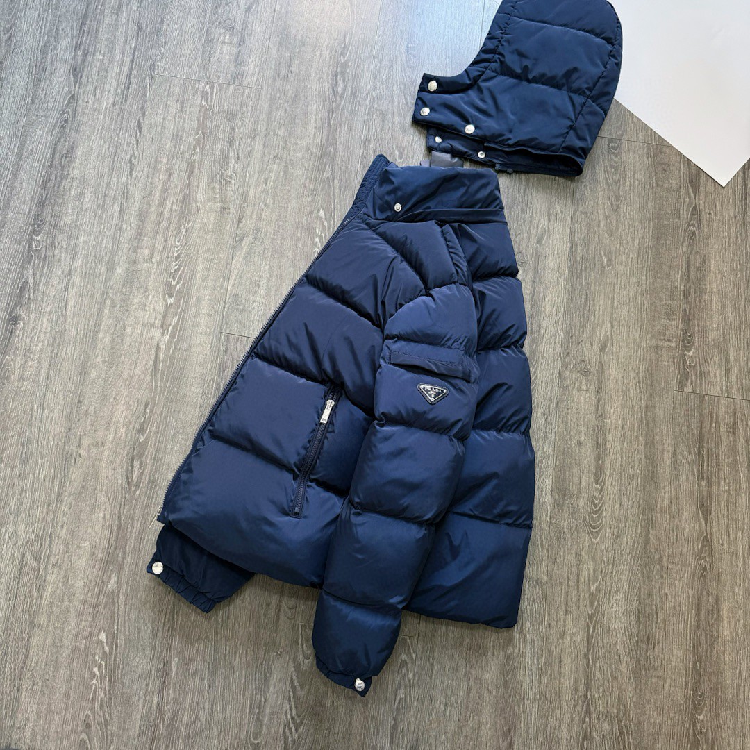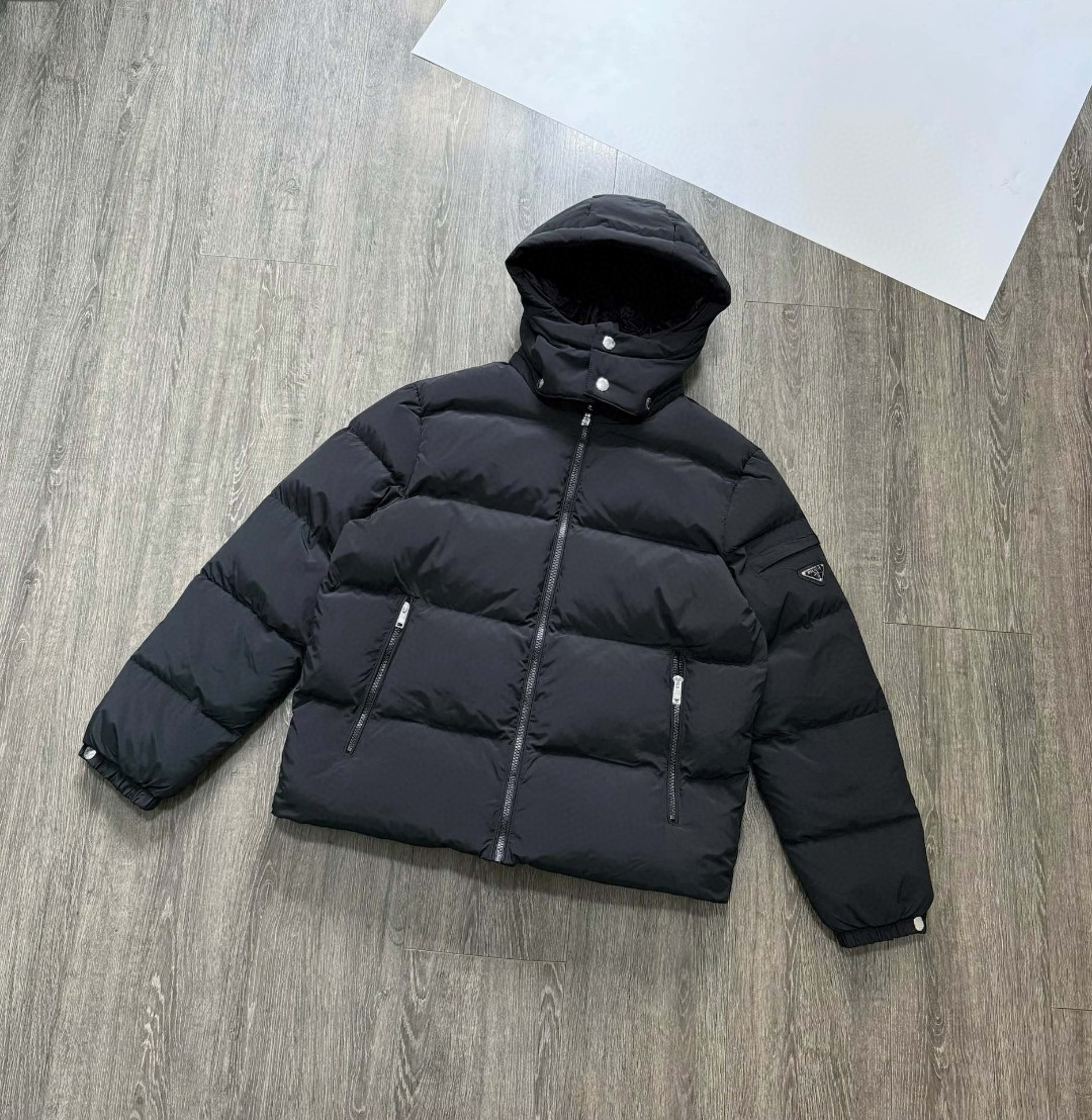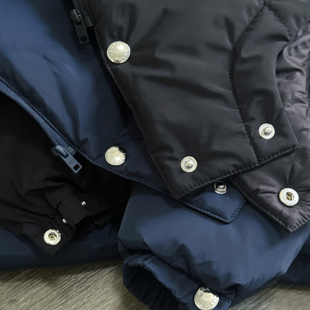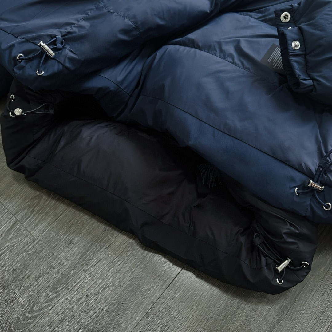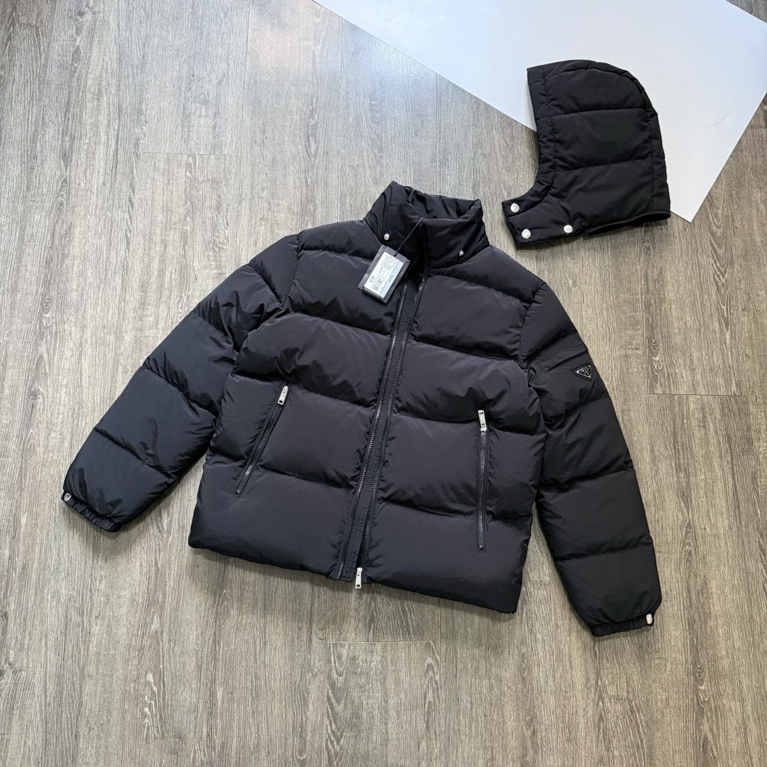 普拉达绗缝抗寒高蓬可拆卸帽棉服 再生尼龙防风拒水面料