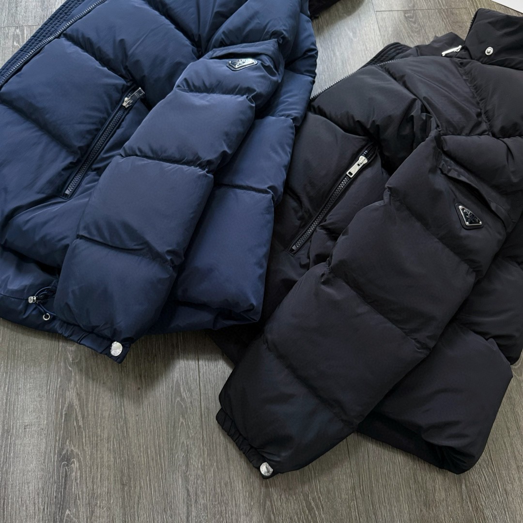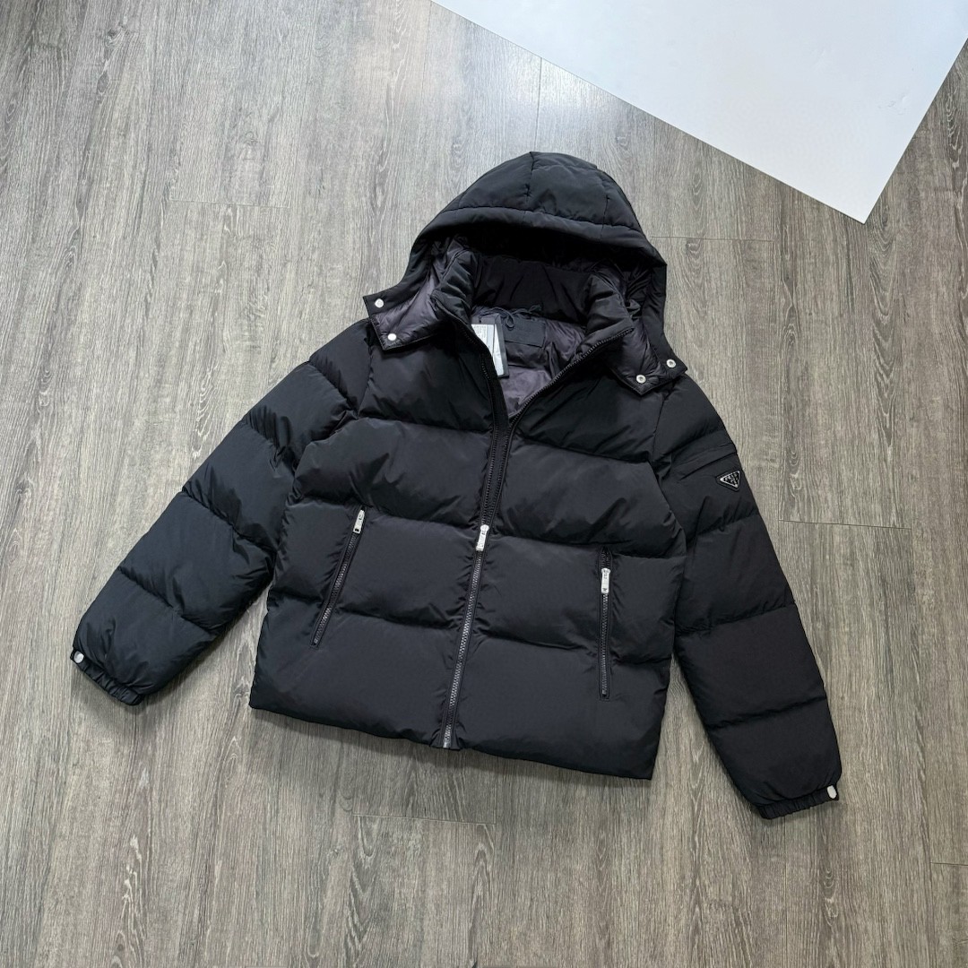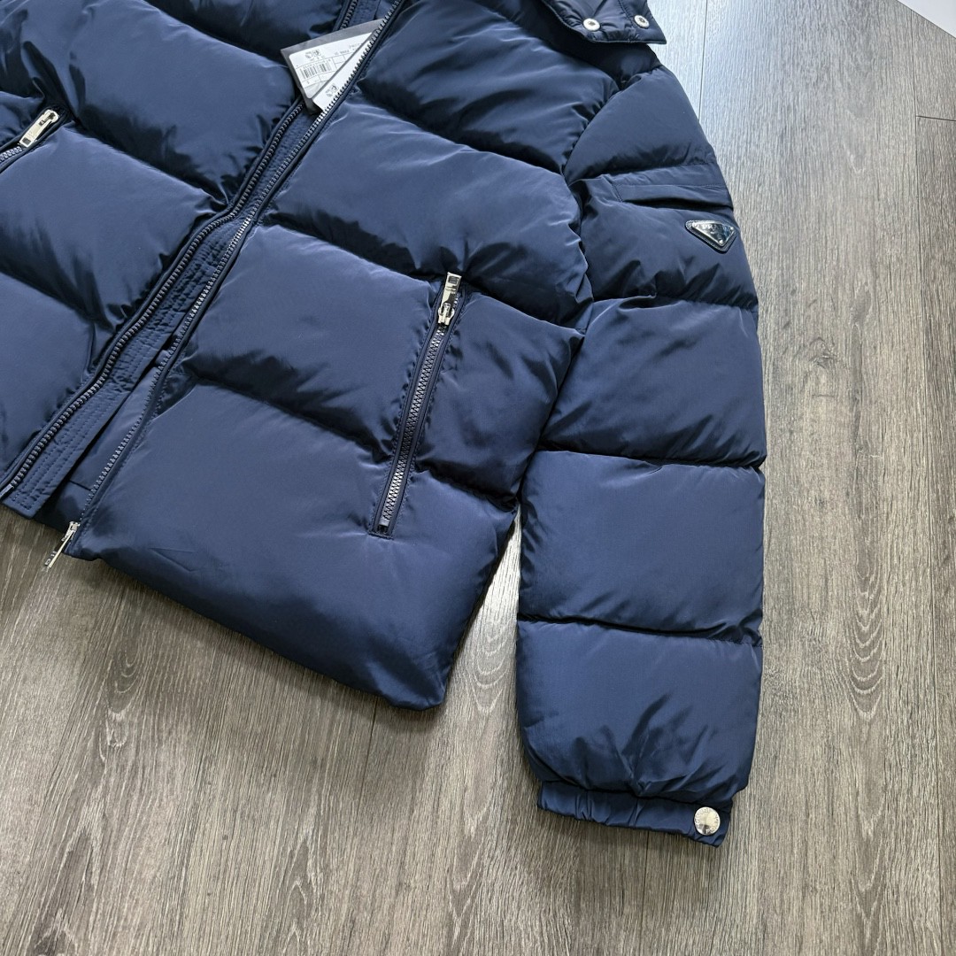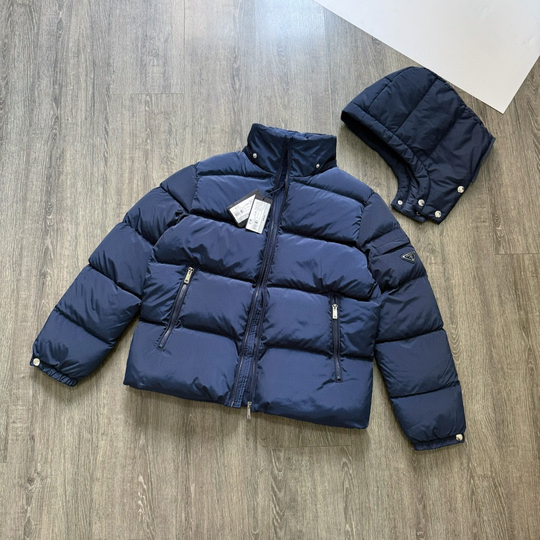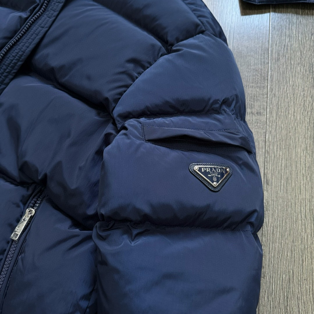 普拉达绗缝抗寒高蓬可拆卸帽棉服 再生尼龙防风拒水面料