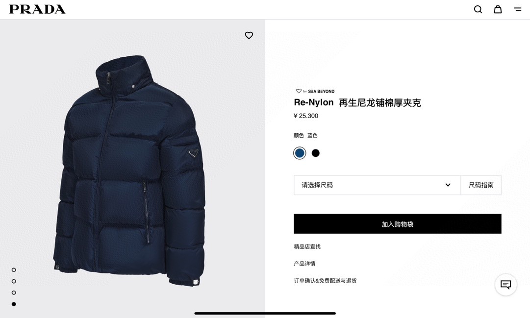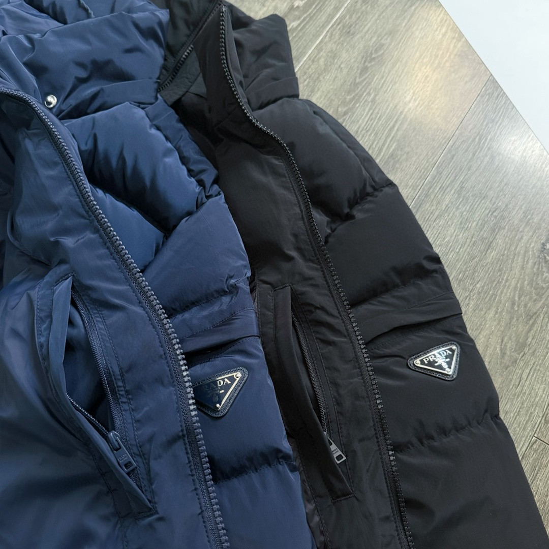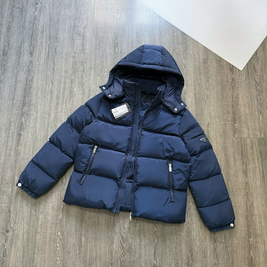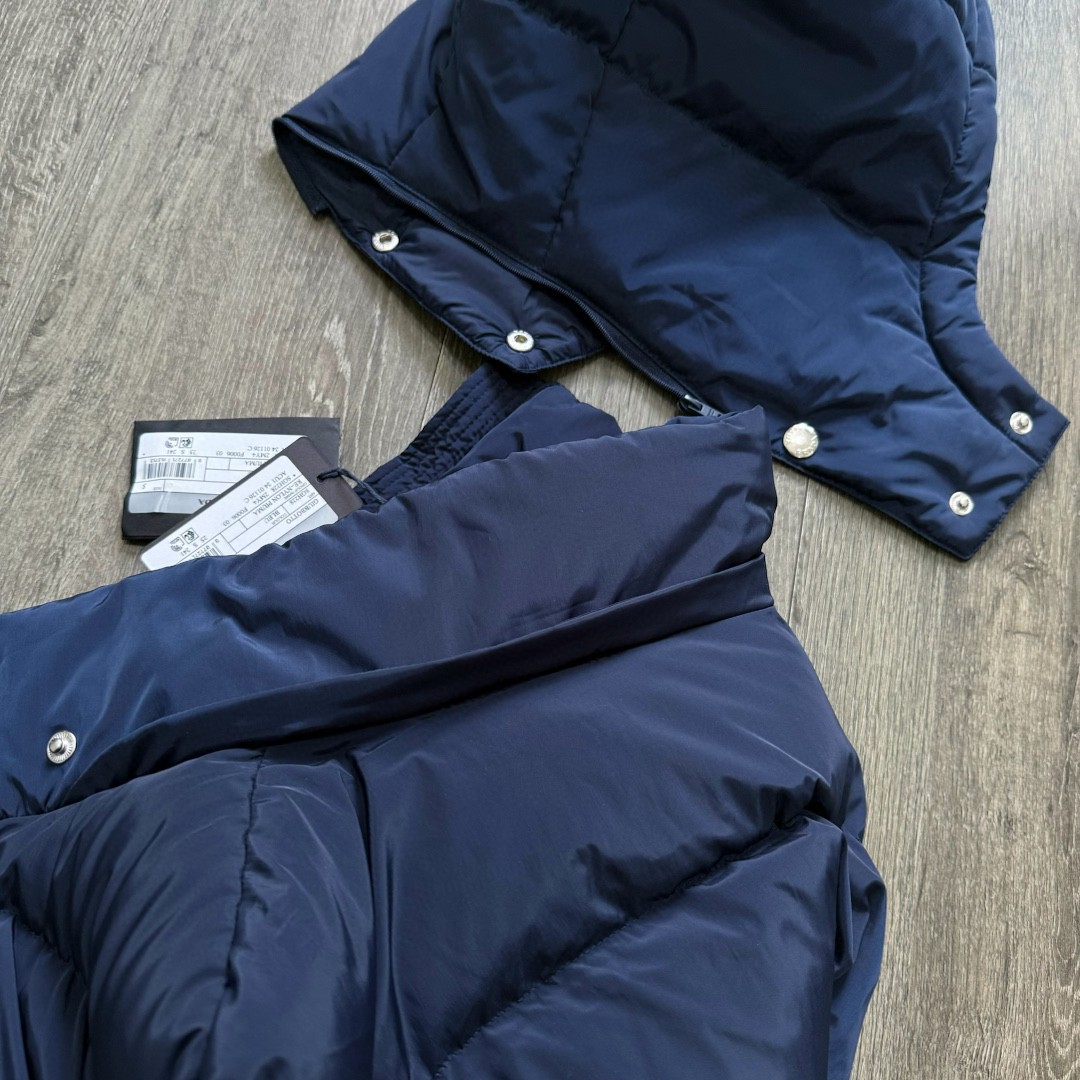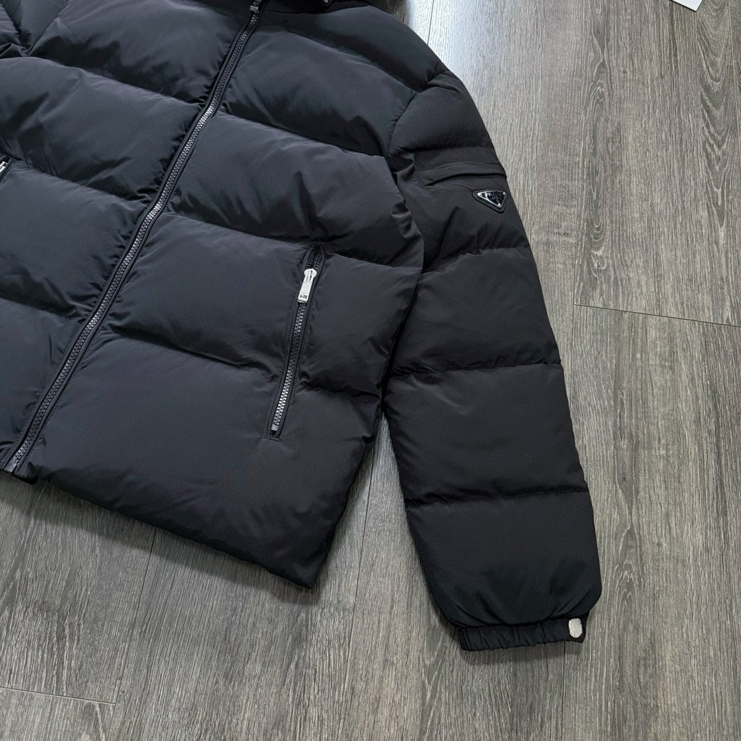 普拉达绗缝抗寒高蓬可拆卸帽棉服 再生尼龙防风拒水面料